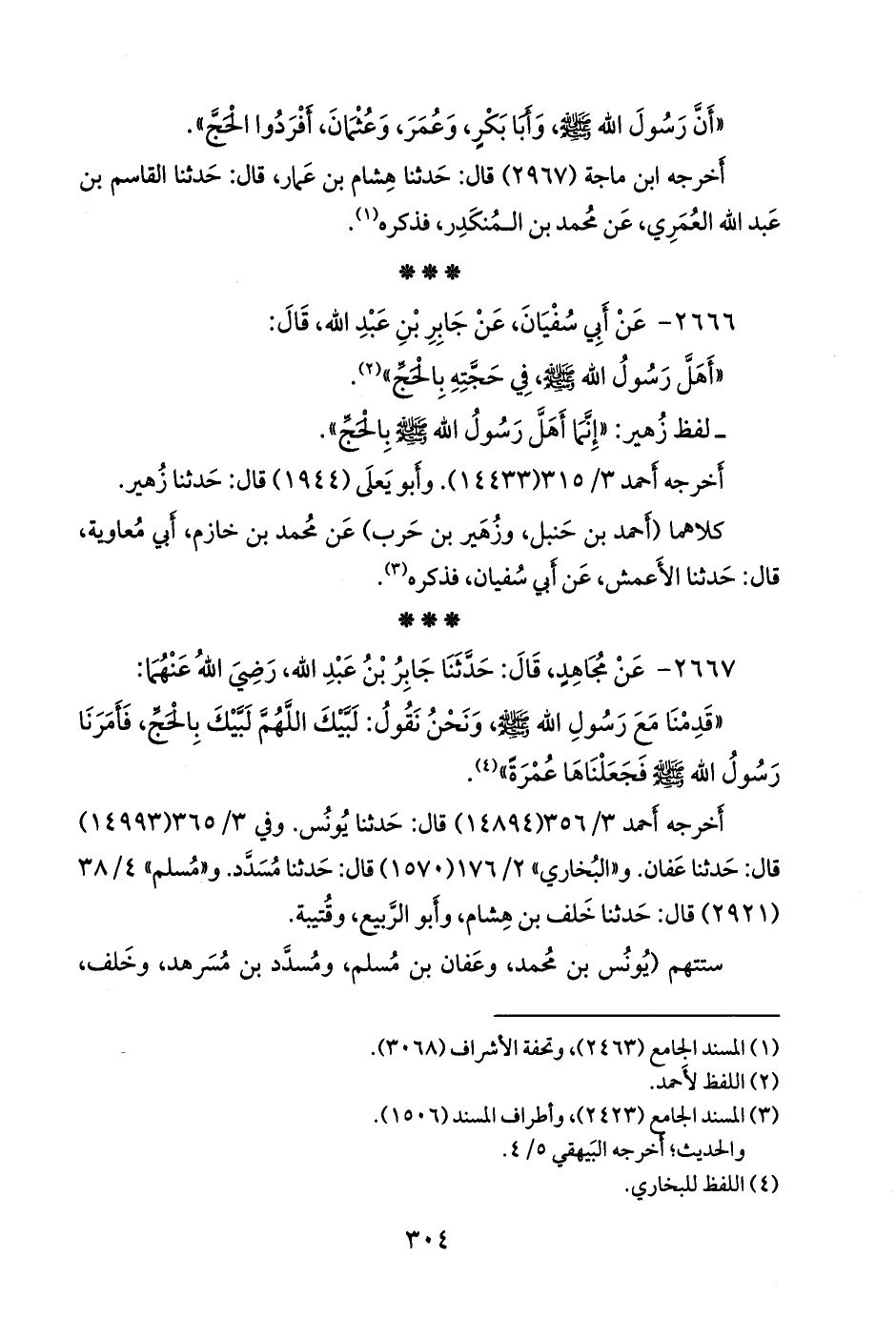 - لفظ زهير: «إنما أهل رسول الله صَلى الله عَليه وسَلم بالحج».