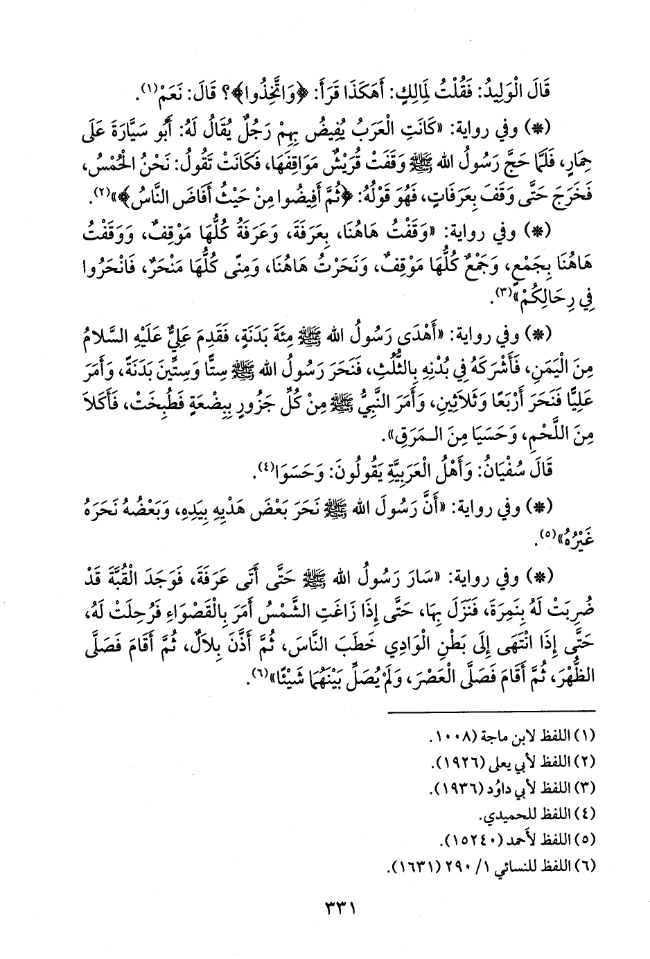 - وقد جاءت الروايات مطولة ومختصرة على فقرة واحدة، أو فقرتين، حيث قام أصحاب الكتب التي خرجته، بتوزيع فقراته على أَبواب الحج.