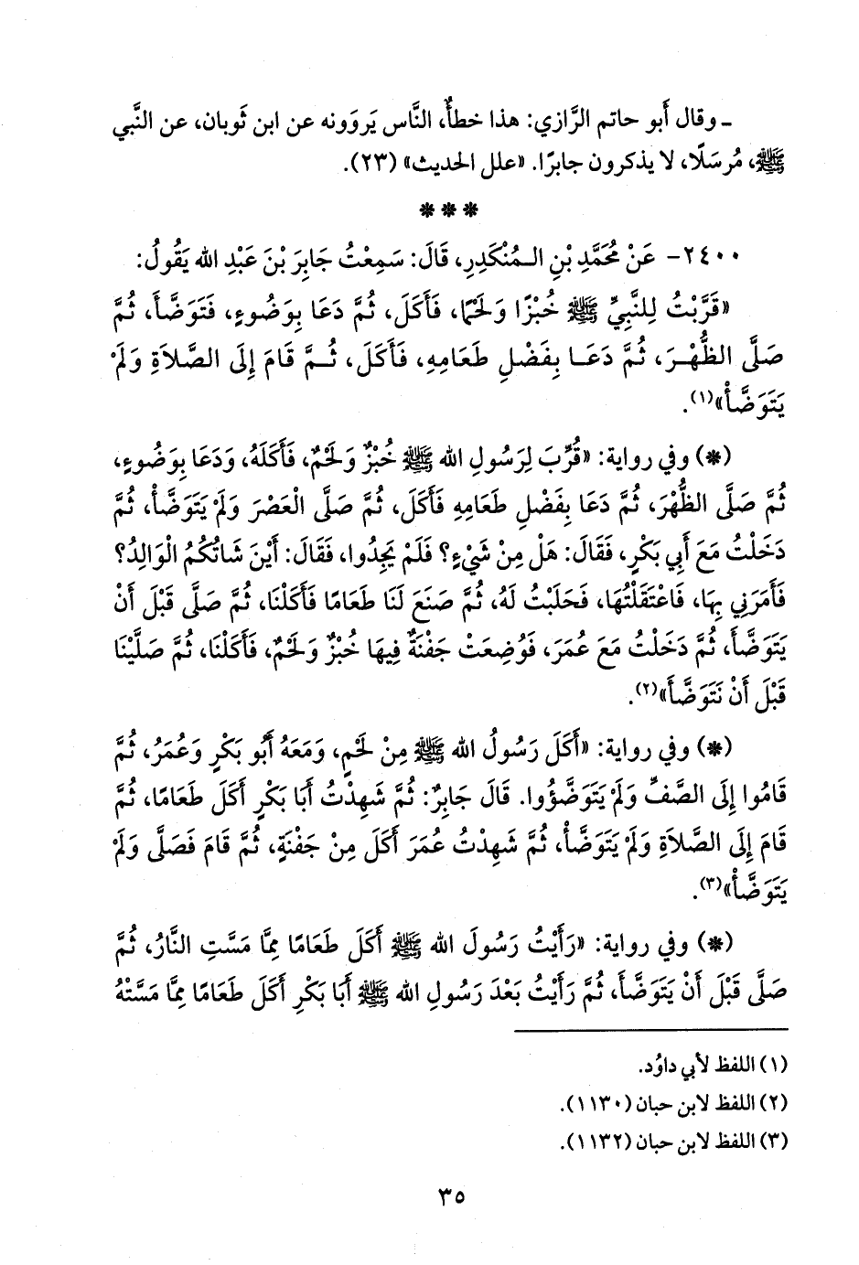 ٢٤٠٠ - عن محمد بن المُنكدِر، قال: سمعت جابر بن عبد الله يقول: