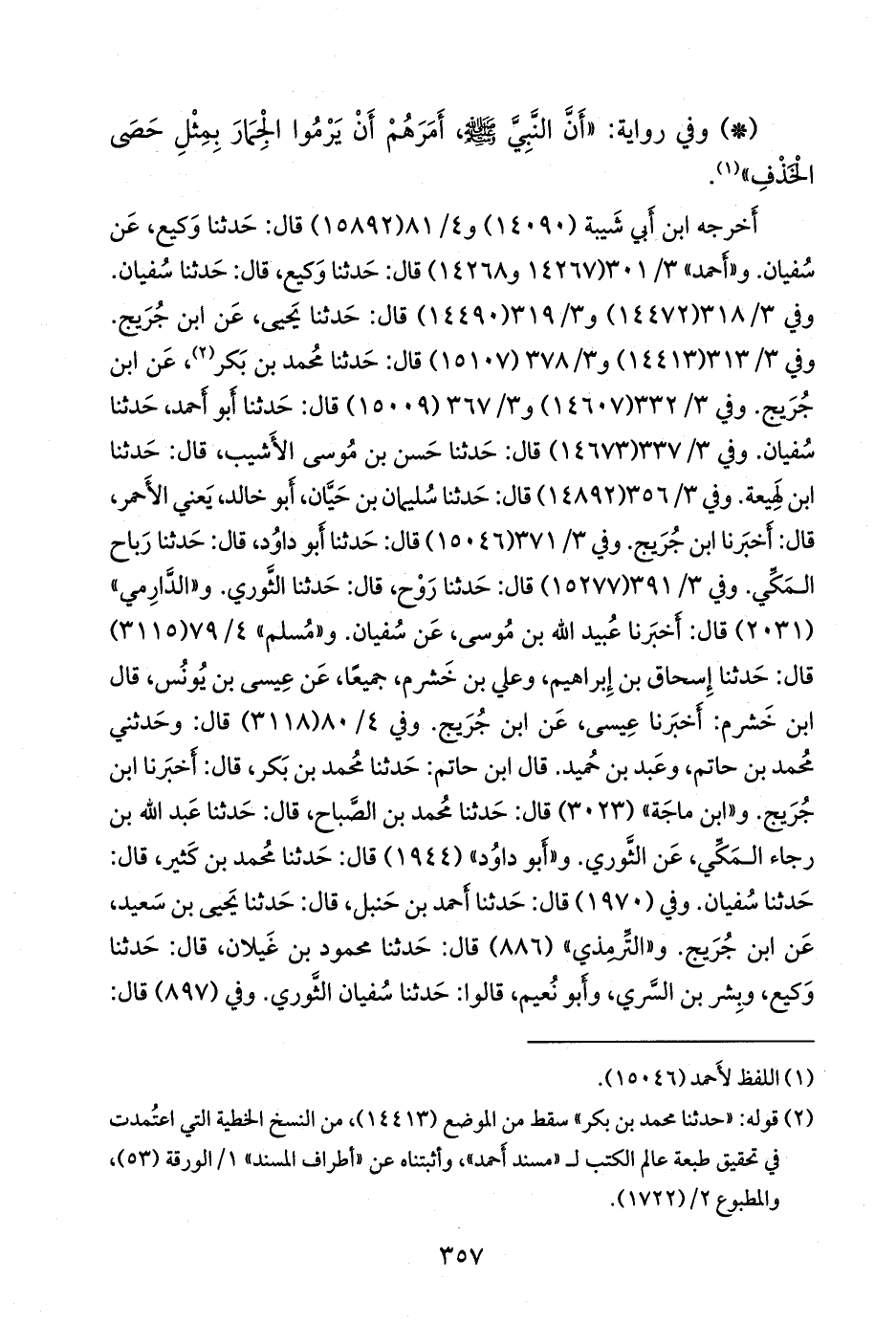 أَخرجه ابن أَبي شيبة (١٤٠٩٠ و ١٥٨٩٢) قال: حدثنا وكيع، عن سفيان. و «أَحمد» ٣/ ٣٠١ (١٤٤٣٨ و ١٤٤٣٩) قال: حدثنا وكيع، قال: حدثنا سفيان. وفي ٣/ ٣١٨ (١٤٦٤٣) و ٣/ ٣١٩ (١٤٦٦١) قال: حدثنا يحيى، عن ابن جُريج. وفي ٣/ ٣١٣ (١٤٥٨٤) قال: حدثنا ( ....... ) (¬٢) , أَخبرنا ابن جُريج. وفي ٣/ ٣٣٢ (١٤٧٧٧) و ٣/ ٣٦٧ (١٥١٧٧) قال: حدثنا أَبو أَحمد، قال: حدثنا سفيان. وفي ٣/ ٣٣٧ (١٤٨٤٢) قال: حدثنا حسن بن موسى الأَشيب، قال: حدثنا ابن لَهيعَة. وفي ٣/ ٣٥٦ (١٥٠٦٠) قال: حدثنا سليمان بن حَيان أَبو خالد، يعني الأَحمر، قال: أَخبرنا ابن جُريج. وفي ٣/ ٣٧١ (١٥٢١٤) قال: حدثنا أَبو داود، قال: حدثنا رباح المَكي. وفي ٣/ ٣٧٨ (١٥٢٧٣) قال: حدثنا محمد بن بكر, أَخبرنا ابن جُريج. وفي ٣/ ٣٩١ (١٥٤٤٠) قال: حدثنا رَوح، قال: حدثنا الثوري. و «الدَّارِمي» (٢٠٣١) قال: أخبرنا عُبيد الله بن موسى، عن سفيان. و «مسلم» ٤/ ٧٩ (٣١١٥) قال: حدثنا إسحاق بن إبراهيم، وعلي بن خَشرَم، جميعا، عن عيسى بن يونس، قال ابن خَشرَم: أخبرنا عيسى، عن ابن جُريج. وفي ٤/ ٨٠ (٣١١٨) قال: وحدثني محمد بن حاتم، وعَبد بن حُميد. قال ابن حاتم: حدثنا محمد بن بكر، قال: أخبرنا ابن جُريج. و «ابن ماجة» (٣٠٢٣) قال: حدثنا محمد بن الصباح، قال: حدثنا عبد الله بن رجاء المكي، عن الثوري. و «أَبو داود» (١٩٤٤) قال: حدثنا محمد بن كثير، قال: حدثنا سفيان. وفي (١٩٧٠) قال: حدثنا أحمد بن حنبل، قال: حدثنا يحيى بن سعيد، عن ابن جُريج. و «التِّرمِذي» (٨٨٦) قال: حدثنا محمود بن غَيلان، قال: حدثنا وكيع، وبشر بن السَّري، وأَبو نُعيم، قالوا: حدثنا سفيان الثوري.