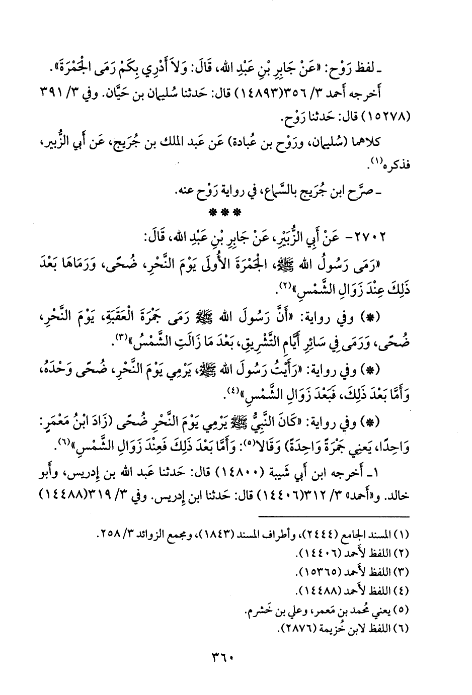 قال: حدثنا يحيى. وفي ٣/ ٣٩٩ (١٥٣٦٥) قال: حدثنا عفان، قال: حدثنا حماد، يعني ابن سلمة. و «الدَّارِمي» (٢٠٢٧) قال: أخبرنا عُبيد الله بن موسى. و «مسلم» ٤/ ٨٠ (٣١١٩) قال: حدثنا أَبو بكر بن أبي شيبة، قال: حدثنا أَبو خالد الأحمر، وابن إدريس. وفي (٣١٢٠) قال: وحدثناه علي بن خَشرَم، قال: أخبرنا عيسى. و «ابن ماجة» (٣٠٥٣) قال: حدثنا حَرملة بن يحيى المصري، قال: حدثنا عبد الله بن وهب. و «أَبو داود» (١٩٧١) قال: حدثنا أحمد بن حنبل، قال: حدثنا يحيى بن سعيد. و «التِّرمِذي» (٨٩٤) قال: حدثنا علي بن خَشرَم، قال: حدثنا عيسى بن يونس.