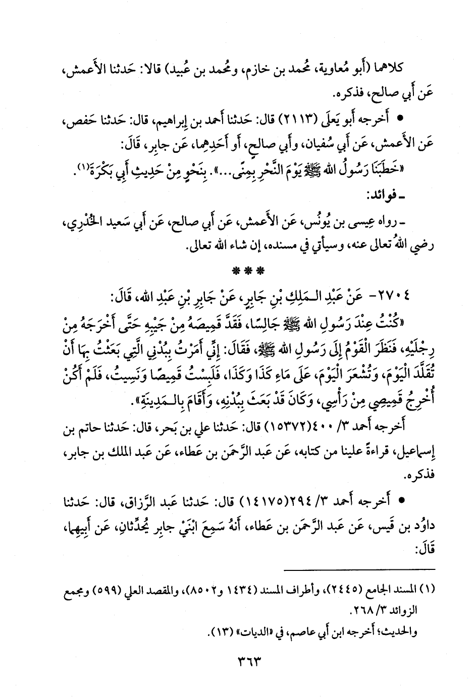 (¬١) المسند الجامع (٢٤٤٩)، وأطراف المسند (١٥٩٥ و ٢٠٤٤)، ومَجمَع الزوائد ٣/ ٢٢٧.