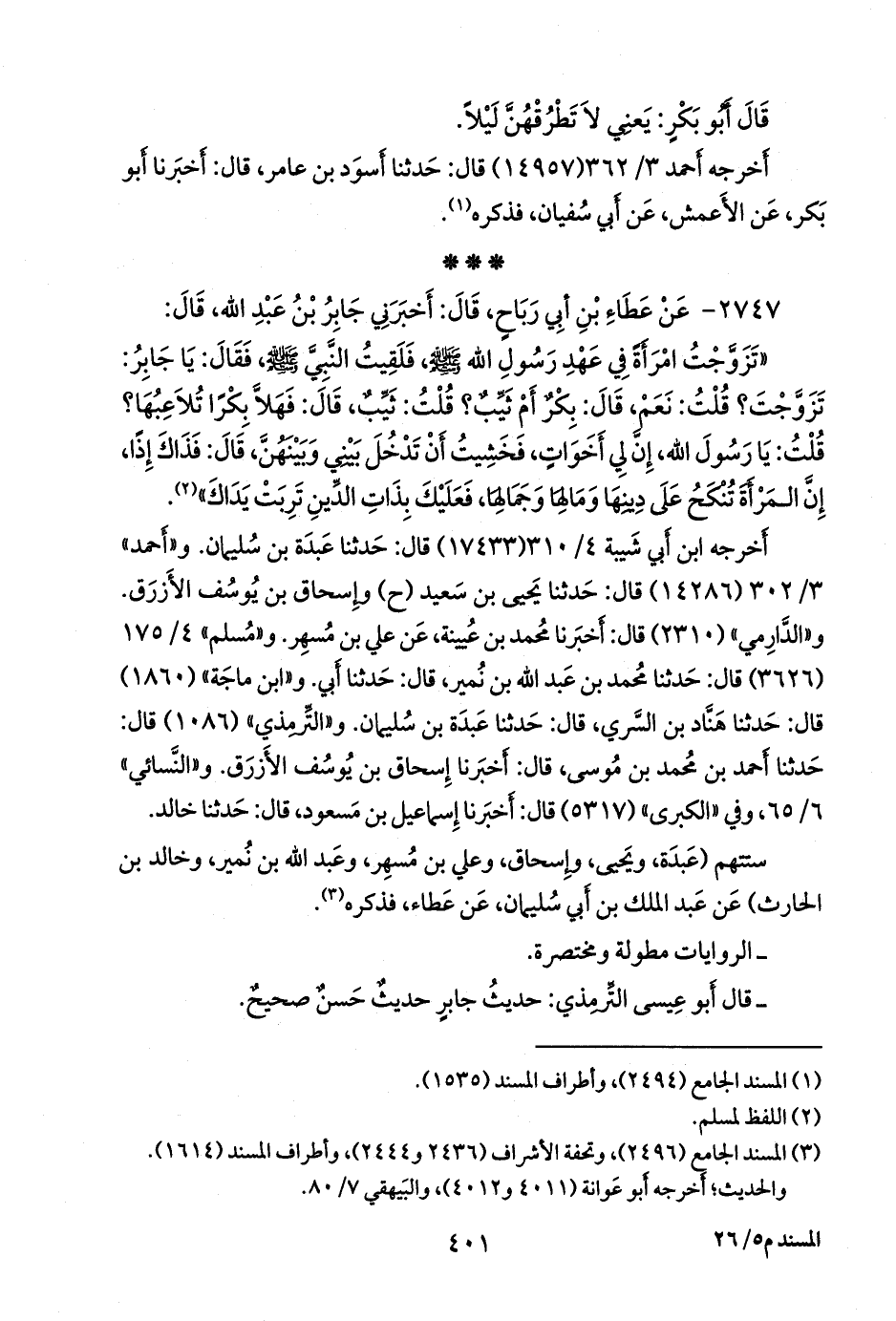 (¬٢) المسند الجامع (٢٤٩٦)، وتحفة الأشراف (٢٤٣٦ و ٢٤٤٤)، وأطراف المسند (١٦١٤).