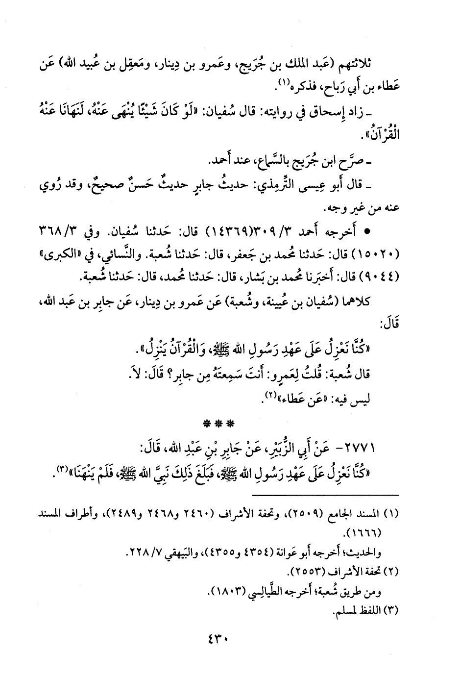 - زاد إسحاق في روايته: قال سفيان: «لو كان شيئًا ينهى عنه، لنهانا عنه القرآن».