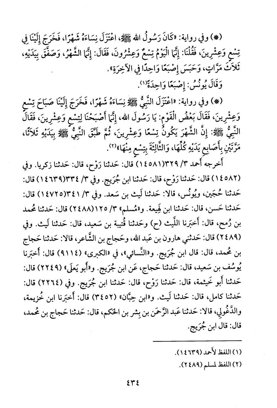 أخرجه أحمد (١٤٥٨١) قال: حدثنا روح، قال: حدثنا زكريا. وفي (١٤٥٨٢) قال: حدثنا روح، قال: حدثنا ابن جُريج. وفي ٣/ ٣٣٤ (١٤٦٣٩) قال: حدثنا حجين، ويونس، قالا: حدثنا ليث بن سعد. وفي ٣/ ٣٤١ (١٤٧٢٥) قال: حدثنا حسن، قال: حدثنا ابن لَهِيعة. و «مسلم» ٣/ ١٢٥ (٢٤٨٨) قال: حدثنا محمد بن رُمح، قال: أخبرنا الليث (ح) وحدثنا قتيبة بن سعيد، قال: حدثنا ليث. وفي (٢٤٨٩) قال: حدثني هارون بن عبد الله، وحجاج بن الشاعر، قالا: حدثنا حجاج بن محمد، قال: قال ابن جُريج. و «النَّسَائي» في «الكبرى» (٩١١٤) قال: أخبرنا يوسف بن سعيد، قال: حدثنا حجاج، عن ابن جُريج. و «أَبو يَعلى» (٢٢٤٩) قال: حدثنا أَبو خيثمة، قال: حدثنا روح، قال: حدثنا ابن جُريج. وفي (٢٢٦٤) قال: حدثنا كامل، قال: حدثنا ليث. و «ابن حِبَّان» (٣٤٥٢) قال: أخبرنا ابن خزيمة، والدغولي، قالا: حدثنا عبد الرَّحمَن بن بشر بن الحكم، قال: حدثنا حجاج بن محمد، قال: قال ابن جُريج.