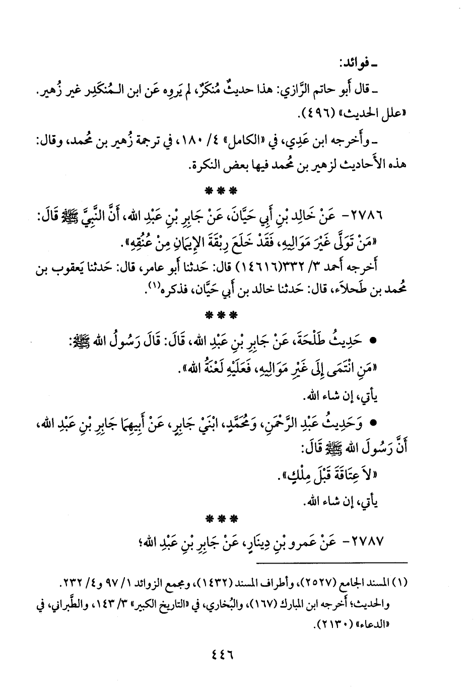 ٢٧٨٦ - عن خالد بن أبي حيان، عن جابر بن عبد الله، أن النبي صَلى الله عَليه وسَلم قال: