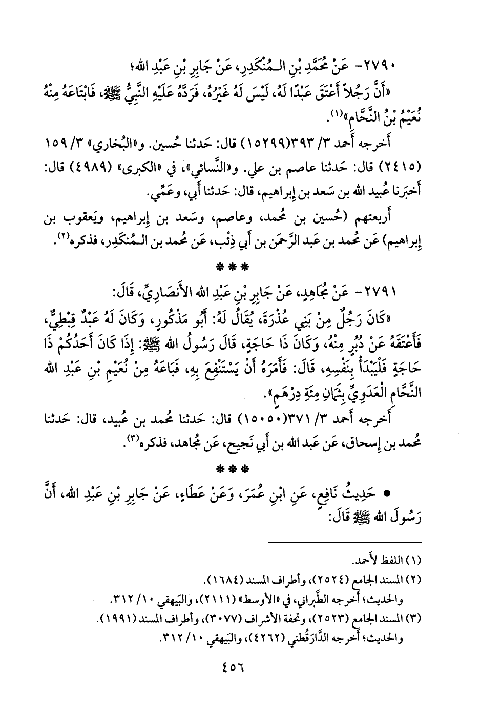 • حديث نافع، عن ابن عمر، وعن عطاء، عن جابر بن عبد الله، أن رسول الله صَلى الله عَليه وسَلم قال: