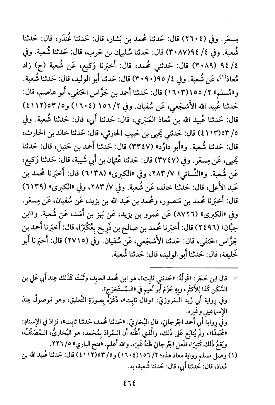 سبعتهم (سفيان بن عُيينة، ومحمد بن بشر، ووكيع، ويحيى بن سعيد القطان، ومحمد بن عُبيد، وخَلاد بن يحيى، وثابت) عن مِسعَر بن كِدَام، عن مُحارِب بن دِثَار، فذكره (¬٤).