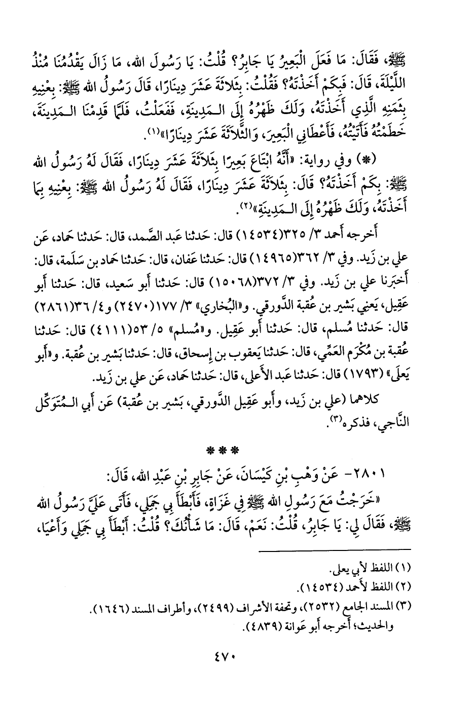 - وفي رواية: «أنه ابتاع بعيرا بثلاثة عشر دينارا، فقال له رسول الله صَلى الله عَليه وسَلم: بكم أخذته؟ قال: بثلاثة عشر دينارا، فقال له رسول الله صَلى الله عَليه وسَلم: بعنيه بما أخذته، ولك ظهره إلى المدينة» (¬١).