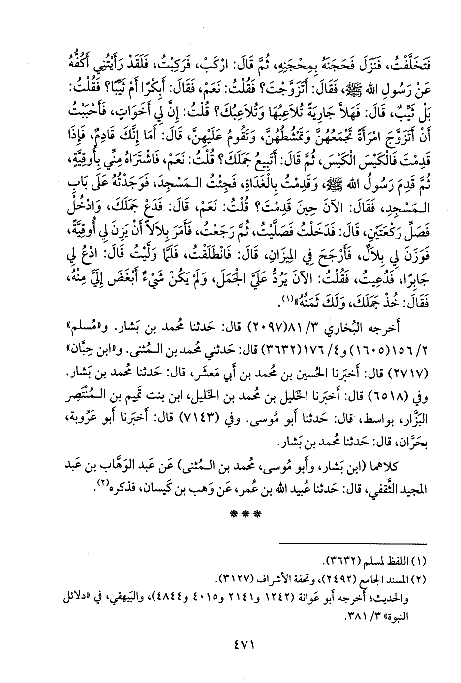 أخرجه البخاري ٣/ ٦٢ (٢٠٩٧) قال: حدثنا محمد بن بشار. و «مسلم» ٢/ ١٥٦ (١٦٠٥) و ٤/ ١٧٦ (٣٦٣٢) قال: حدثني محمد بن المثنى. و «ابن حِبَّان» (٢٧١٧) قال: أخبرنا الحسين بن محمد بن أبي معشر، قال: حدثنا محمد بن بشار. وفي (٦٥١٨) قال: أخبرنا الخليل بن محمد بن الخليل، ابن بنت تميم بن المنتصر البزار، بواسط، قال: حدثنا أَبو موسى. وفي (٧١٤٣) قال: أخبرنا أَبو عَروبَة، بحران، قال: حدثنا محمد بن بشار.