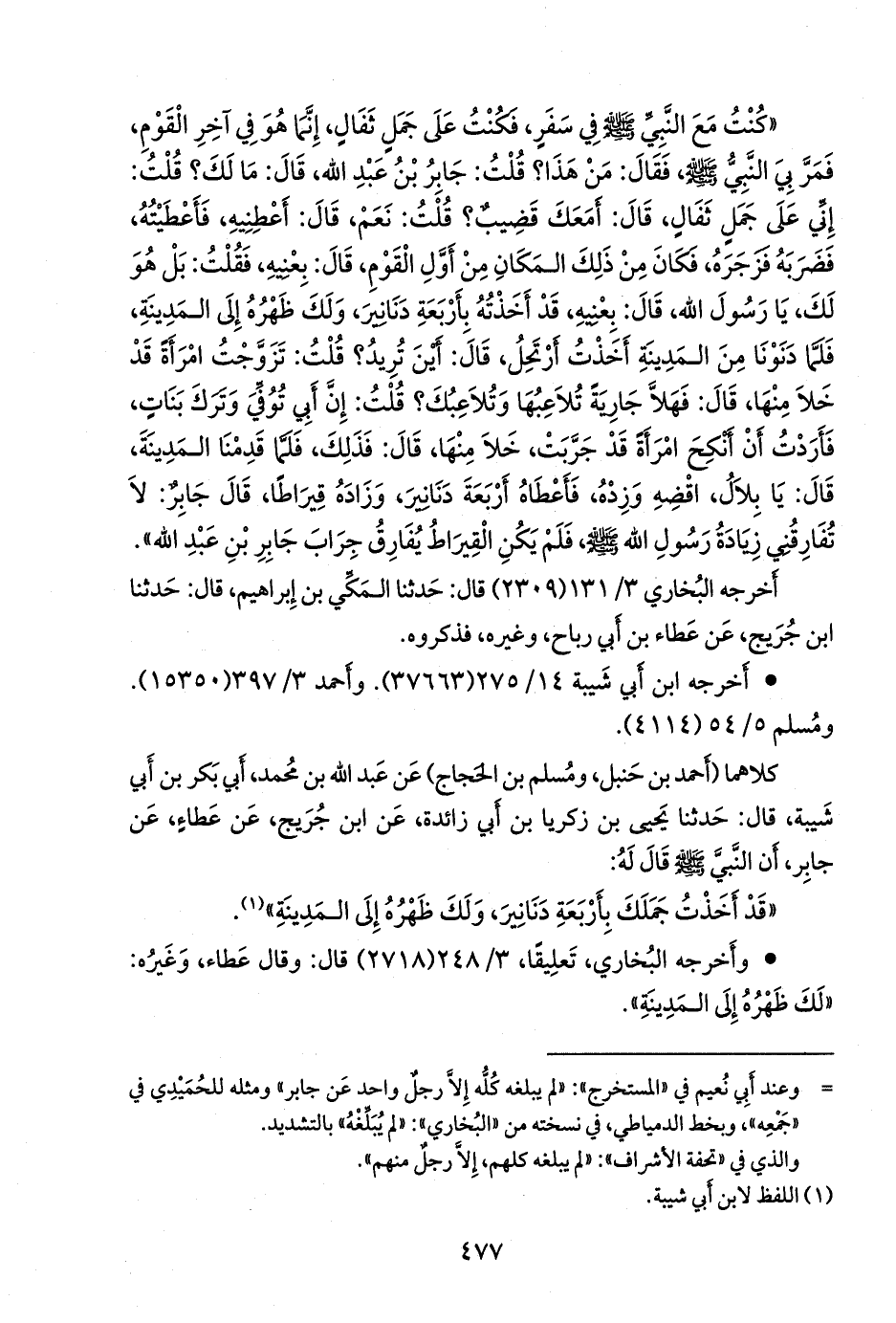 «قد أخذت جملك بأربعة دنانير، ولك ظهره إلى المدينة» (¬١).