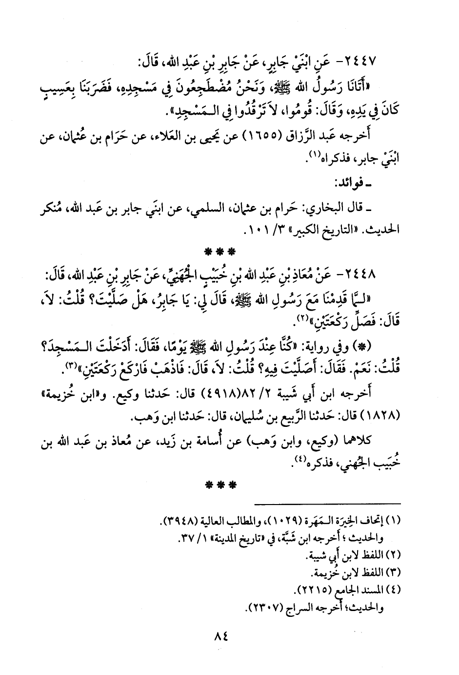 ٢٤٤٨ - عن معاذ بن عبد الله بن خبيب الجهني، عن جابر بن عبد الله، قال: