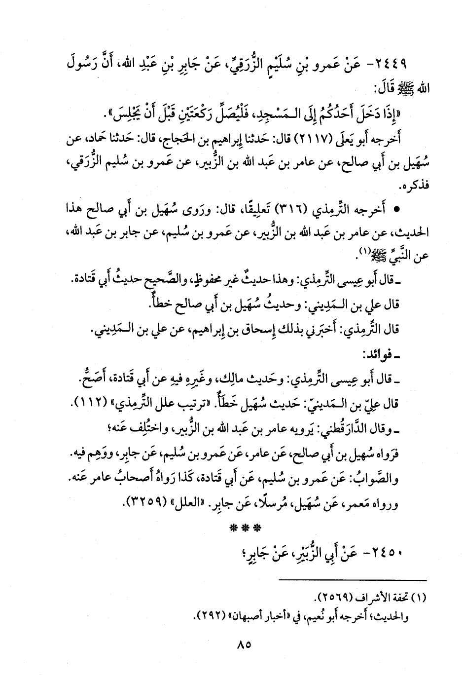 ٢٤٤٩ - عن عَمرو بن سليم الزرقي، عن جابر بن عبد الله، أن رسول الله صَلى الله عَليه وسَلم قال: