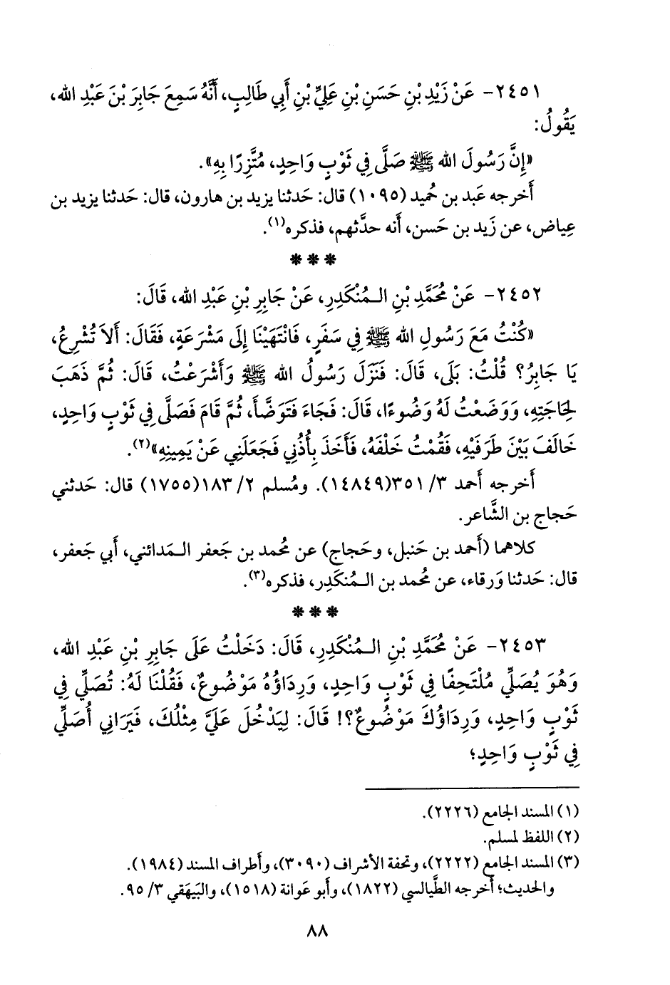 ٢٤٥١ - عن زيد بن حسن بن علي بن أبي طالب، أنه سمع جابر بن عبد الله، يقول:
