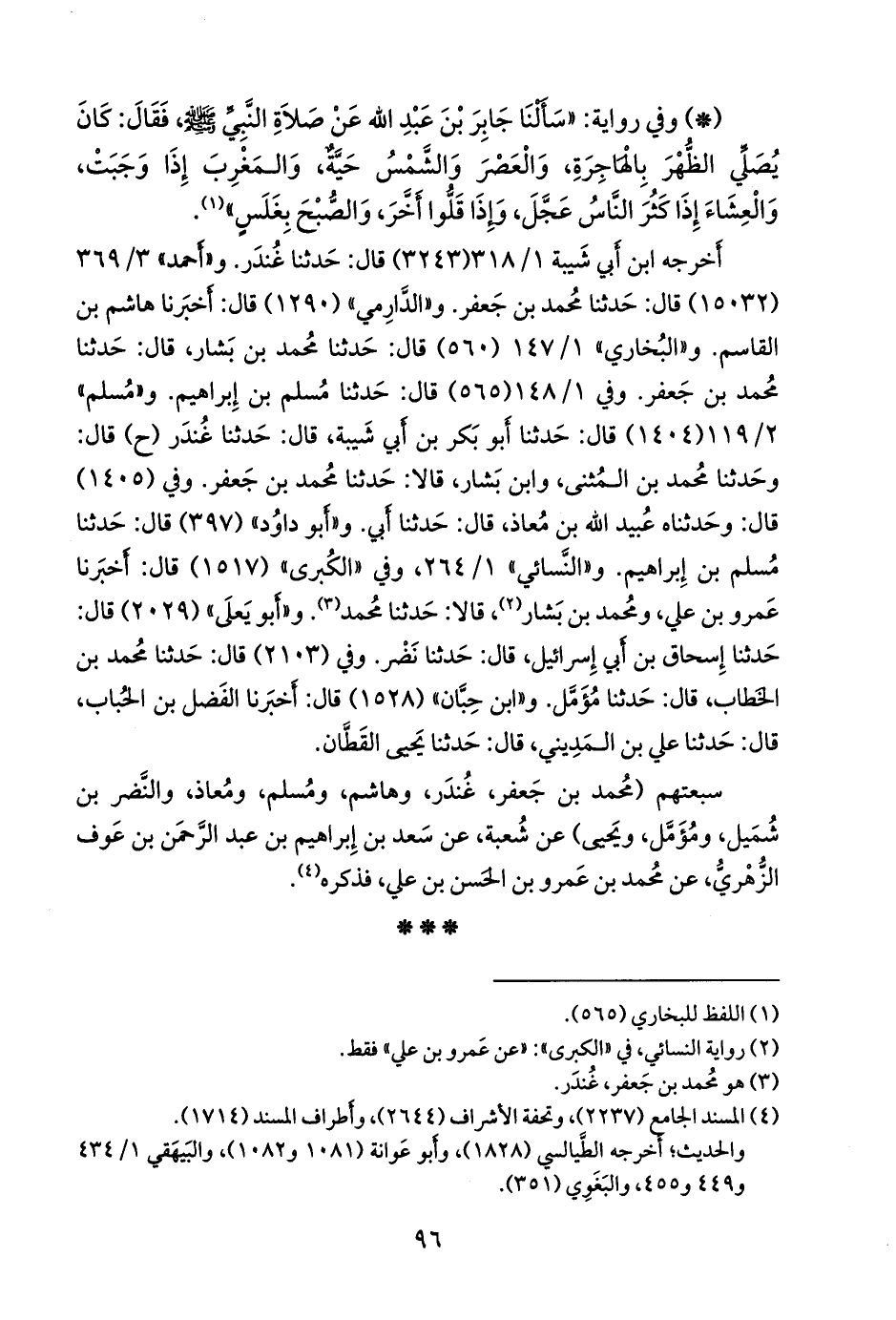 و «البخاري» ١/ ١١٦ (٥٦٠) قال: حدثنا محمد بن بشار، قال: حدثنا محمد بن جعفر. وفي ١/ ١١٧ (٥٦٥) قال: حدثنا مسلم بن إبراهيم. و «مسلم» ٢/ ١١٩ (١٤٠٤) قال: حدثنا أَبو بكر بن أبي شيبة، قال: حدثنا غُندَر (ح) قال: وحدثنا محمد بن المثنى، وابن بشار، قالا: حدثنا محمد بن جعفر. وفي (١٤٠٥) قال: وحدثناه عُبيد الله بن معاذ، قال: حدثنا أبي. و «أَبو داود» (٣٩٧) قال: حدثنا مسلم بن إبراهيم. و «النَّسَائي» ١/ ٢٦٤، وفي «الكبرى» (١٥١٧) قال: أخبرنا عَمرو بن علي، ومحمد بن بشار (¬١)، قالا: حدثنا محمد (¬٢). و «أَبو يَعلى» (٢٠٢٩) قال: حدثنا إسحاق بن أبي إسرائيل، قال: حدثنا نضر. وفي (٢١٠٣) قال: حدثنا محمد بن الخطاب، قال: حدثنا مُؤَمَّل. و «ابن حِبَّان» (١٥٢٨) قال: أخبرنا الفضل بن الحُبَاب، قال: حدثنا علي بن المديني، قال: حدثنا يحيى القطان.