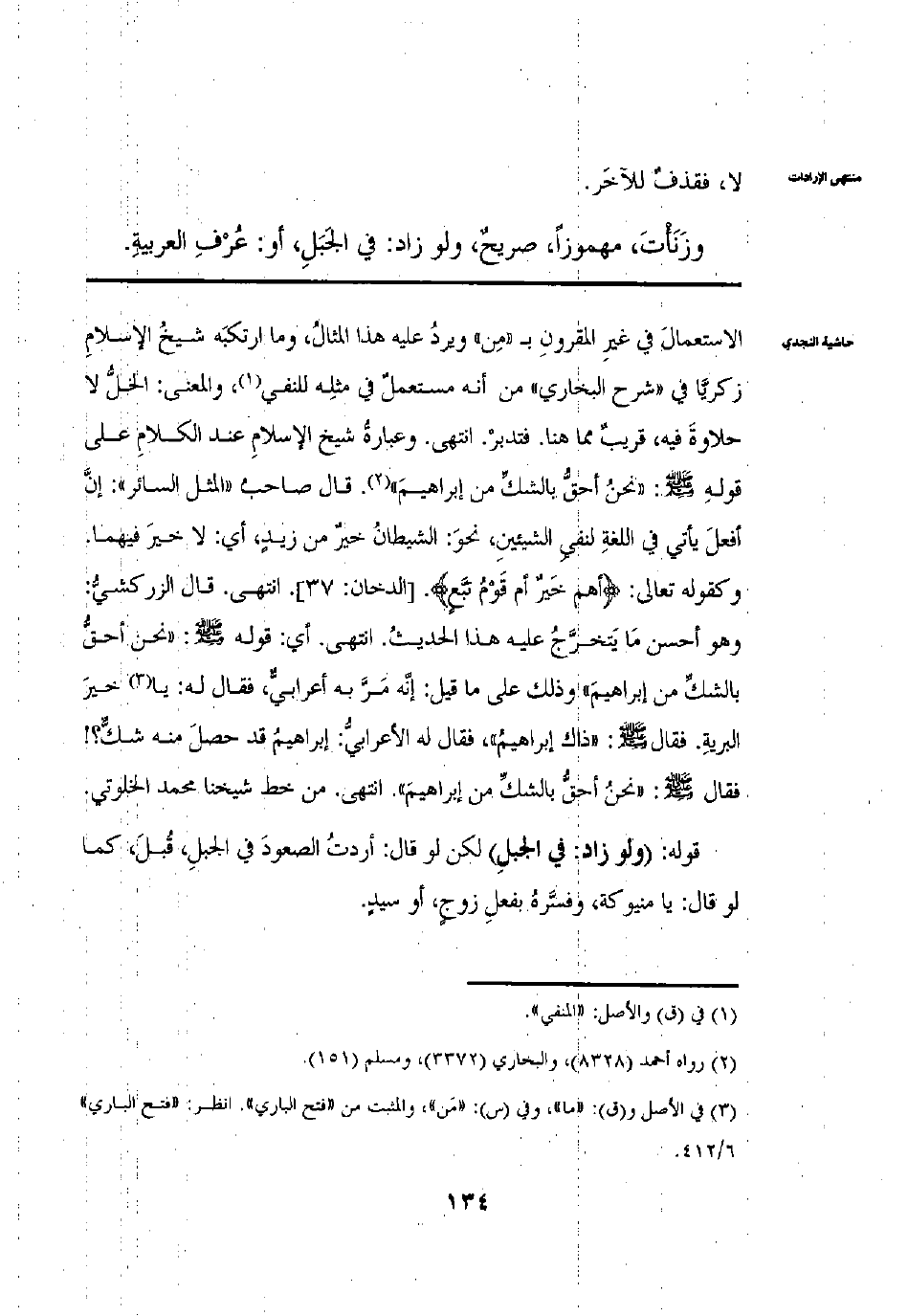 لَا فقَذْفٌ لِلْآخَرِ وزَنَأْت مَهْمُوزًا صَرِيحٌ وَلَوْ زَادَ فِي الْجَبَلِ أَوْ عَرَفَ الْعَرَبِيَّةَ