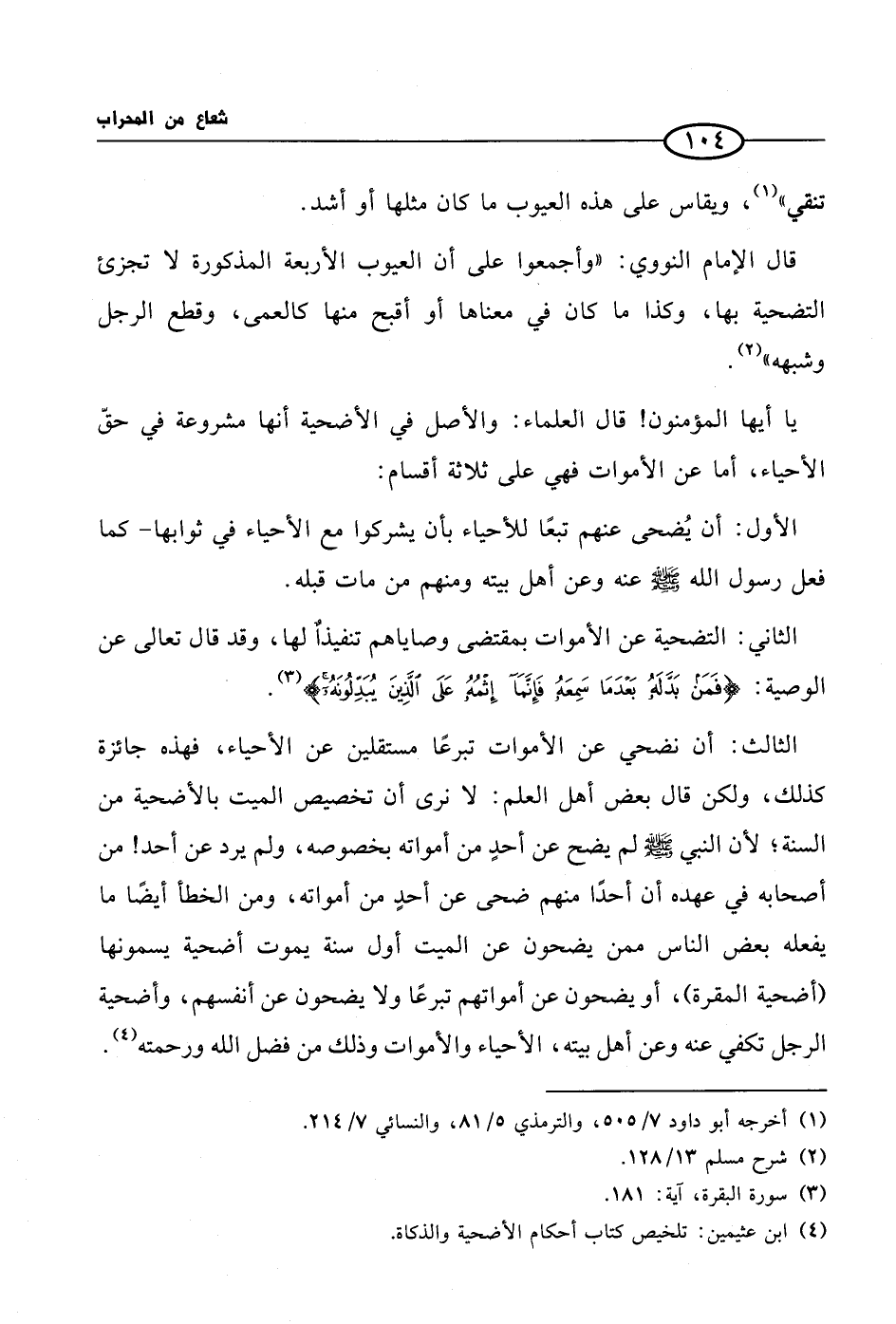 (¬4) ابن عثيمين: تلخيص كتاب أحكام الأضحية والذكاة.