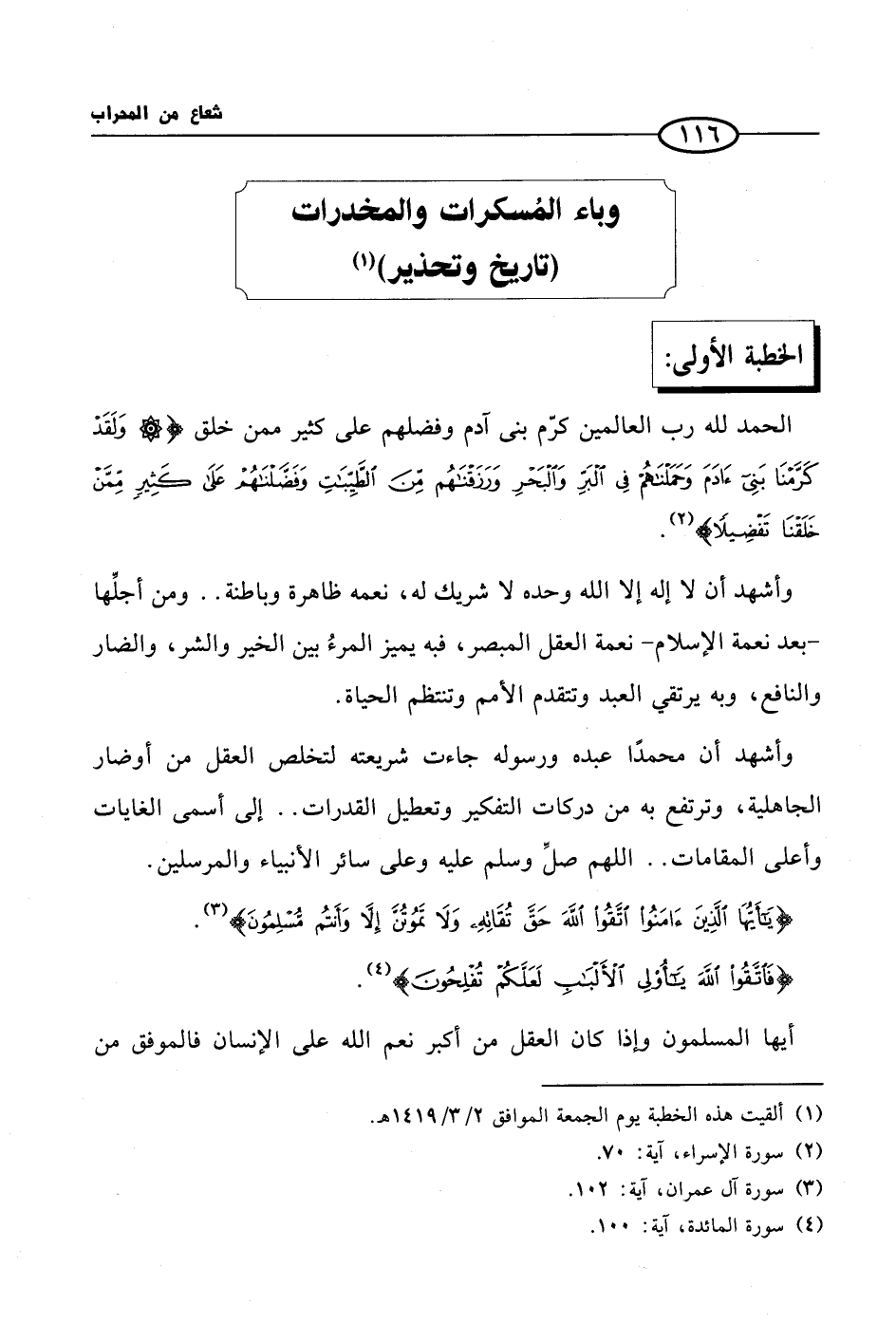 (¬1) ألقيت هذه الخطبة يوم الجمعة الموافق 2/ 3/ 1419 هـ.