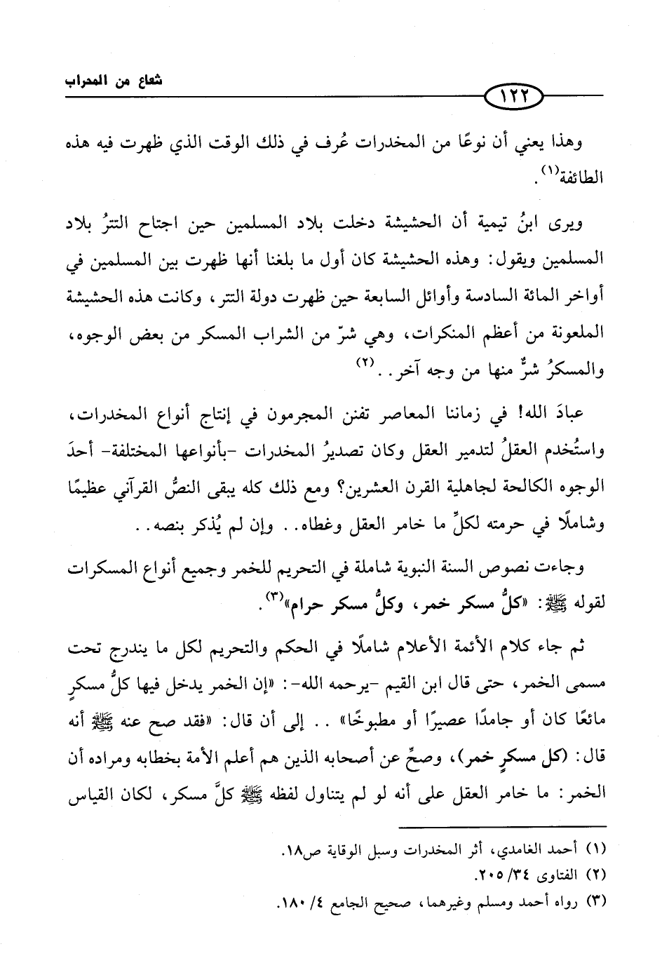 (¬1) أحمد الغامدي، أثر المخدرات وسبل الوقاية ص 18.