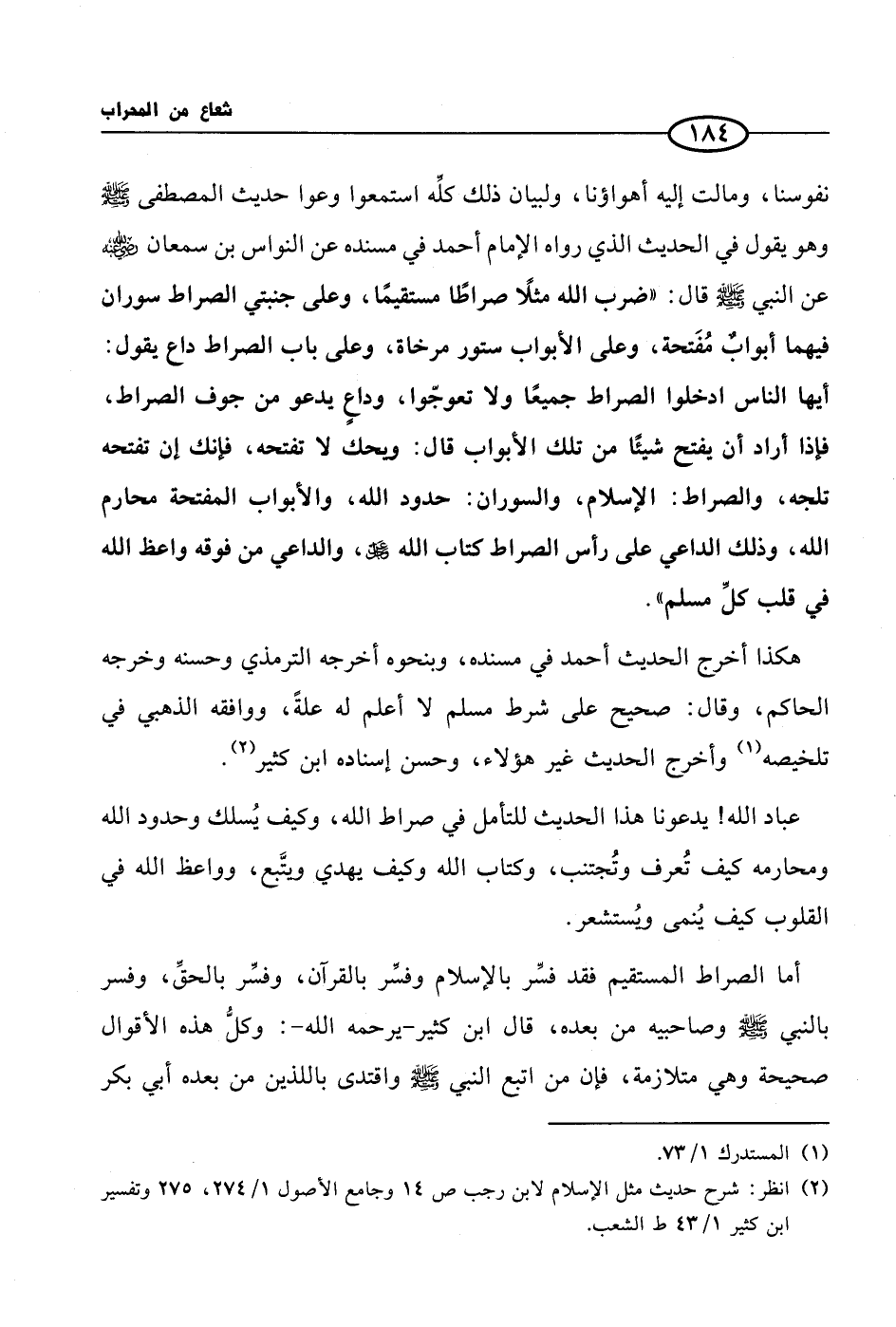 (¬2) انظر: شرح حديث مثل الإسلام لابن رجب ص 14 وجامع الأصول 1/ 274، 275 وتفسير ابن كثير 1/ 43 ط الشعب.