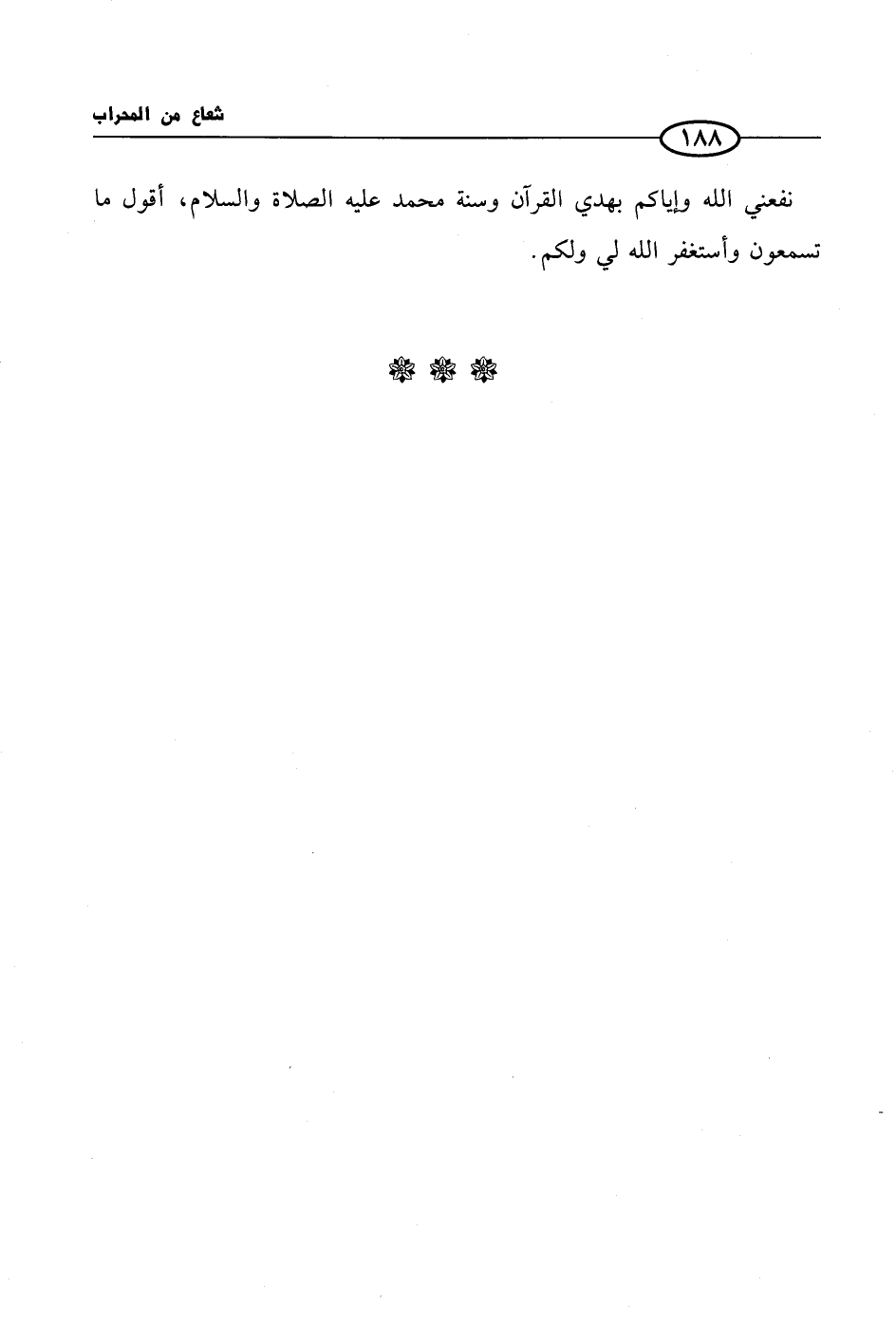 نفعني الله وإياكم بهدي القرآن وسنة محمد عليه الصلاة والسلام، أقول ما تسمعون وأستغفر الله لي ولكم.