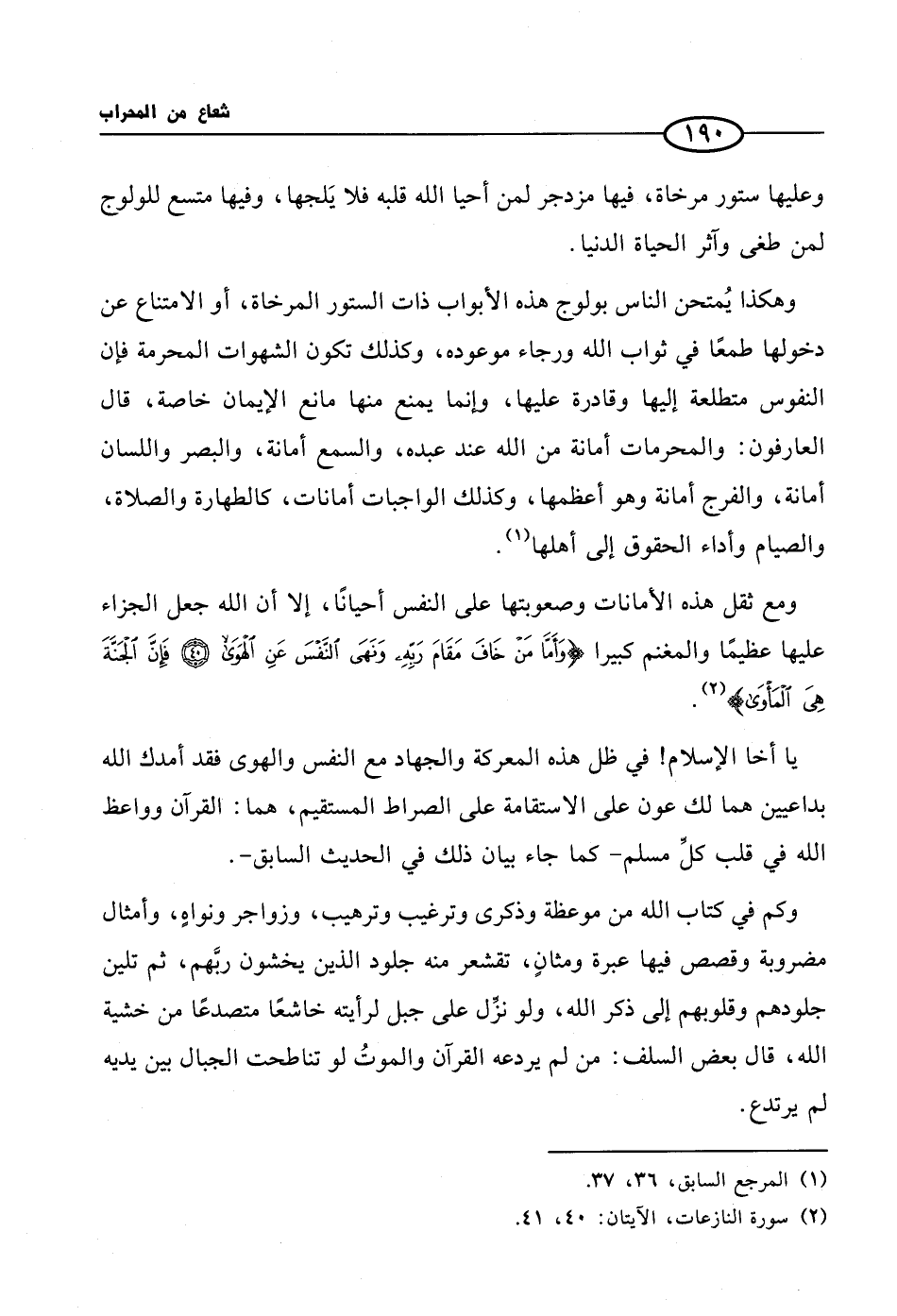 (¬2) سورة النازعات، الآيتان: 45، 41.