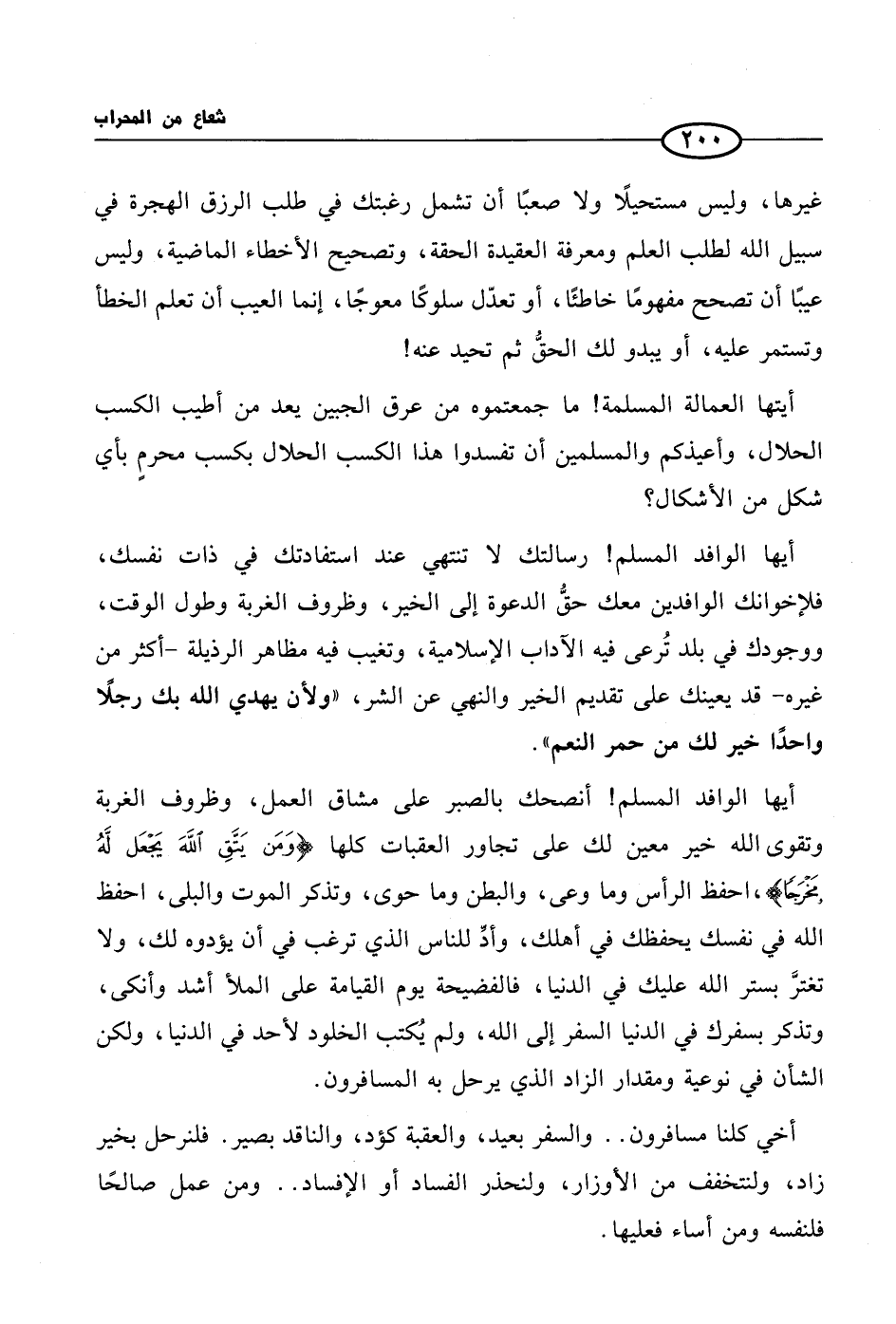 أيتها العمالة المسلمة! ما جمعتموه من عرق الجبين يعد من أطيب الكسب الحلال، وأعيذكم والمسلمين أن تفسدوا هذا الكسب الحلال بكسب محرمٍ بأي شكل من الأشكال؟