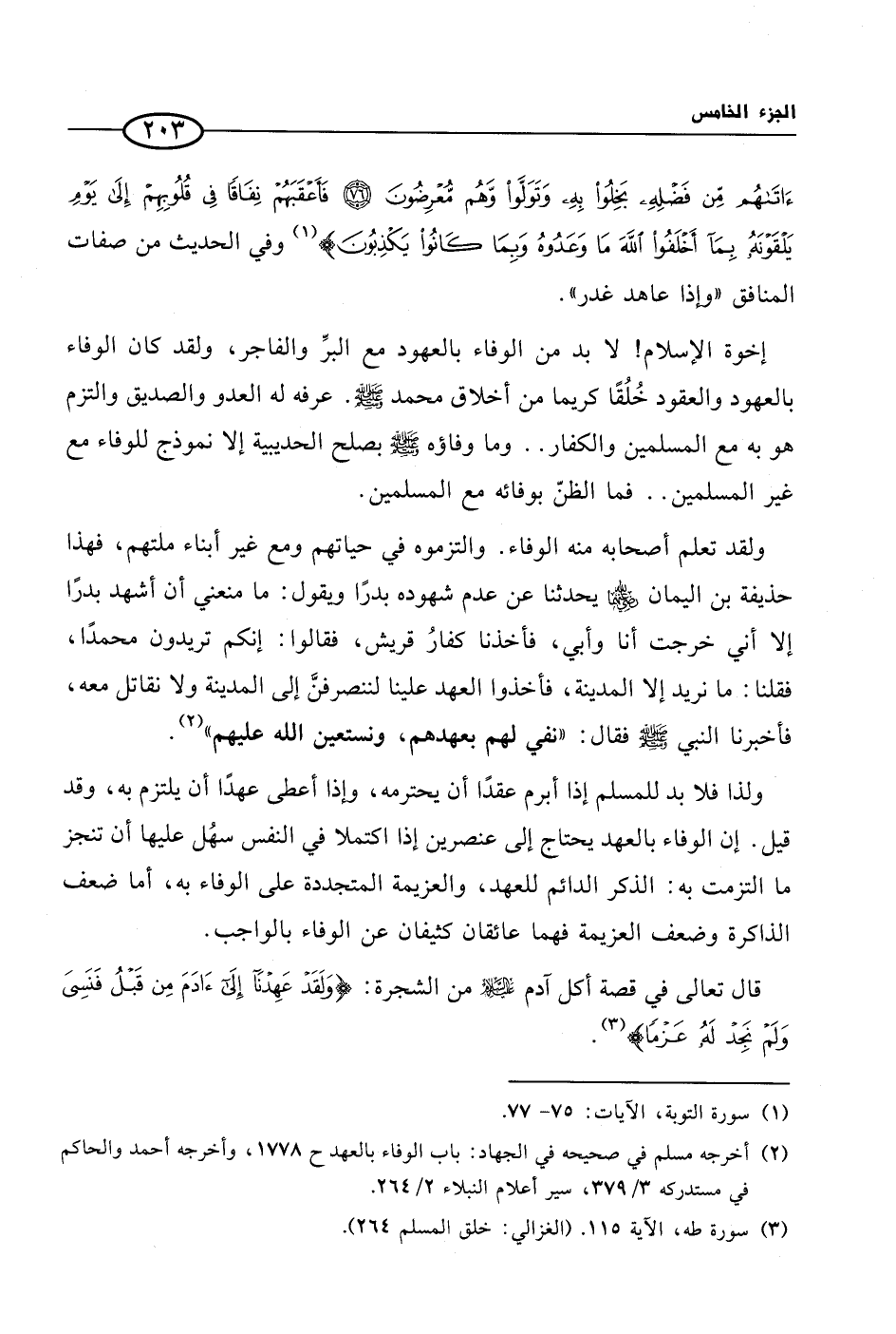 (¬3) سورة طه، الآية 115. (الغزالي: خلق المسلم 264).