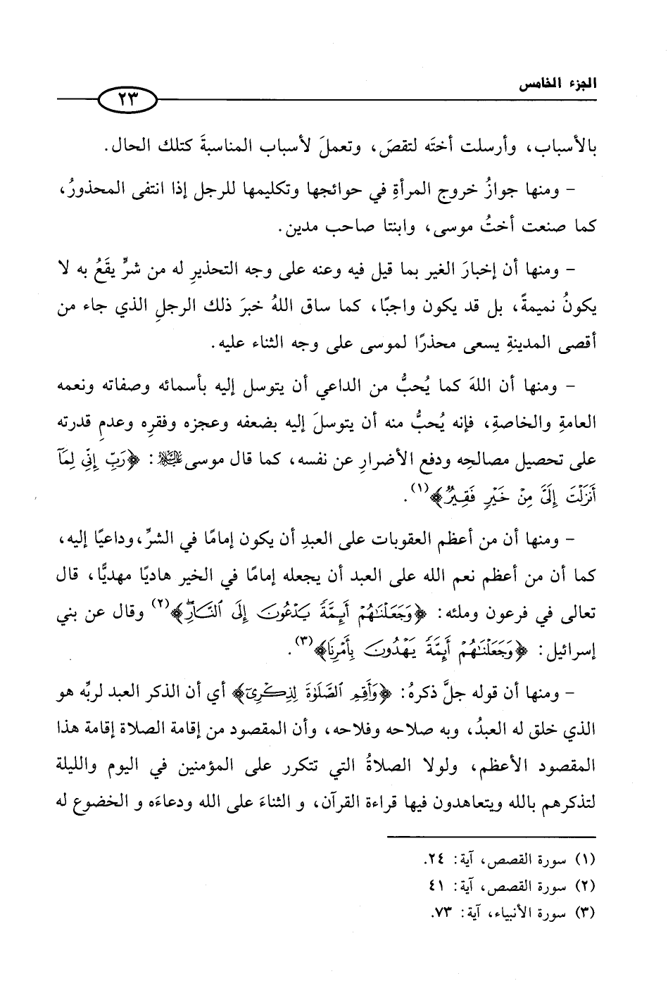 - ومنها أن من أعظم العقوبات على العبدِ أن يكون إمامًا في الشرِّ، وداعيًا إليه، كما أن من أعظم نعم الله على العبد أن يجعله إمامًا في الخير هاديًا مهديًّا، قال تعالى في فرعون وملئه: {وجعلناهم أئمة يدعون على النار} (¬2) وقال عن بني إسرائيل: {وجعلناهم أئمة يهدون بأمرنا} (¬3).