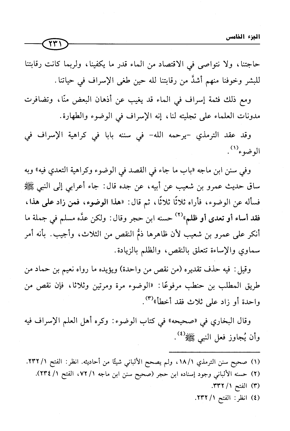 ومع ذلك فثمة إسراف في الماء قد يغيب عن أذهان البعض منّا، وتضافرت مدونات العلماء على تجليته لنا، إنه الإسراف في الوضوء والطهارة.