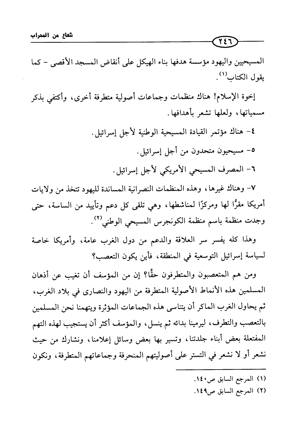7 - وهناك غيرها، وهذه المنظمات النصرانية المساندة لليهود تتخذ من ولايات أمريكا مقرًّا لها ومركزًا لمناشطها، وهي تلقى كل دعم وتأييد من الساسة، حتى وجدت منظمة باسم منظمة الكونجرس المسيحي الوطني (¬2).