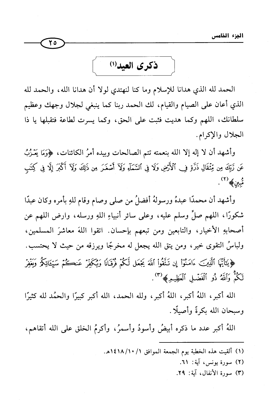 (¬1) ألقيت هذه الخطبة يوم الجمعة الموافق 1/ 10/ 1418 هـ.