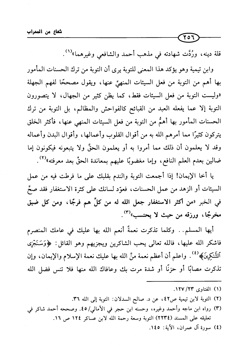 (¬2) التوبة لابن تيمية ص 42، عن د. صالح السدلان: التوبة إلى الله 36.
