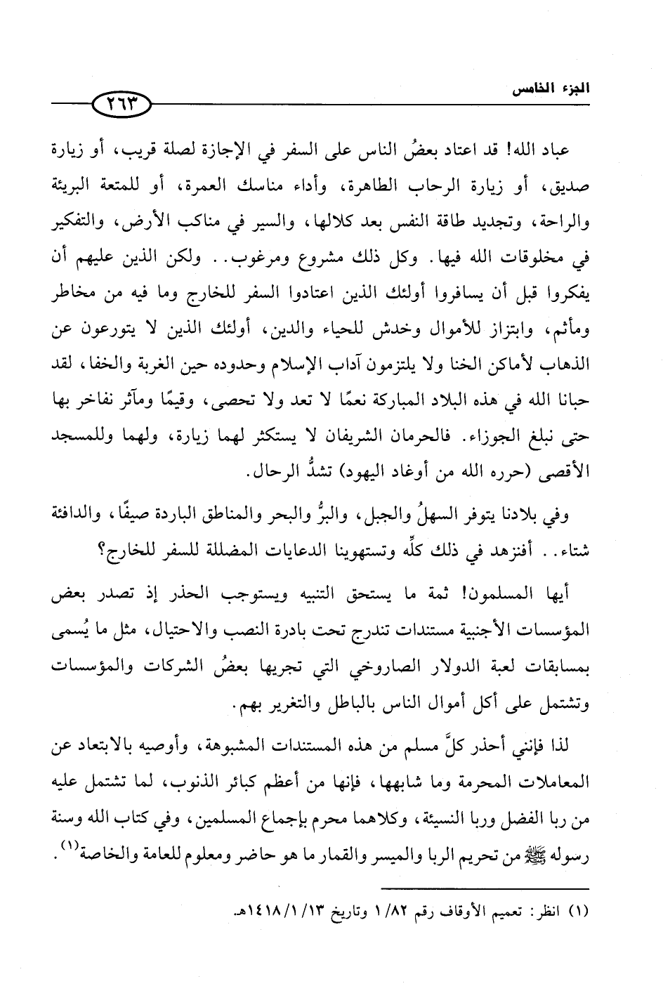 (¬1) انظر: تعميم الأوقاف رقم 82/ 1 وتاريخ 13/ 1/ 1418 هـ.