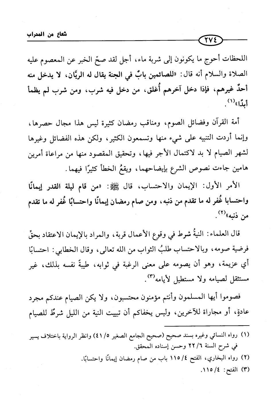 (¬2) رواه البخاري، الفتح 4/ 115 باب من صام رمضان إيمانا واحتسابا.