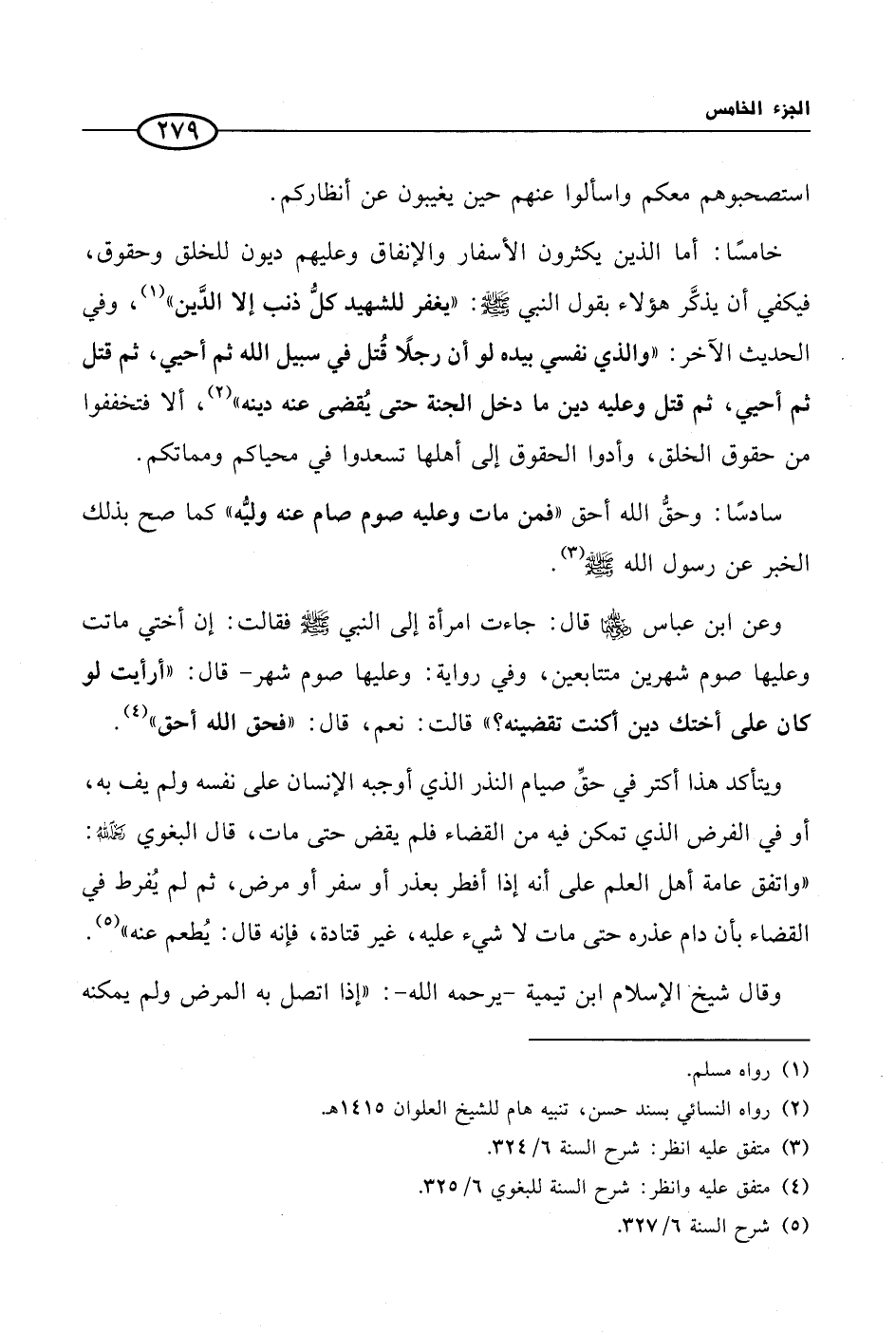 سادسًا: وحقُّ الله أحق ((فمن مات وعليه صوم صام عنه وليُّه)) كما صح بذلك الخبر عن رسول الله صلى الله عليه وسلم (¬3).