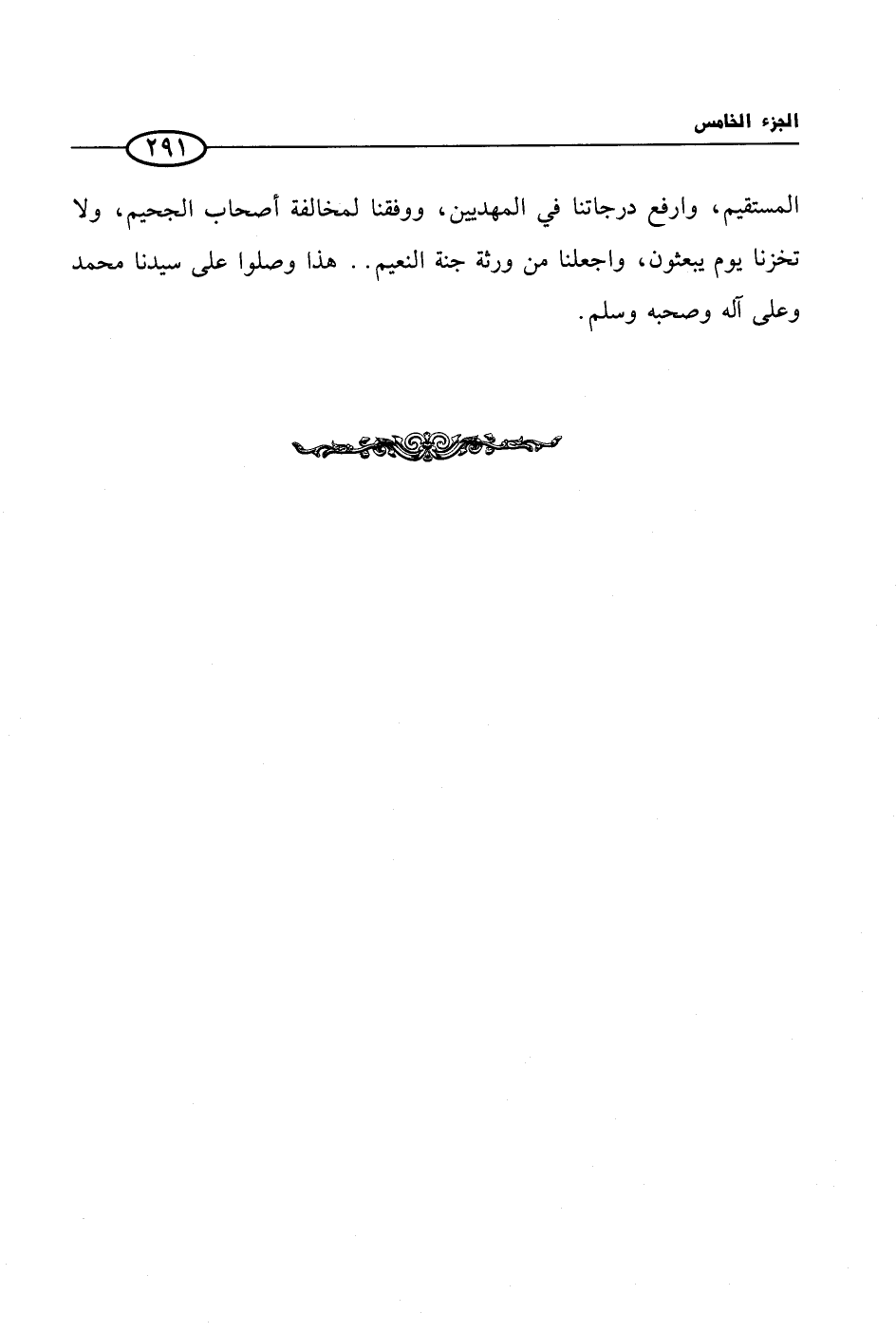 المستقيم، وارفع درجاتنا في المهديين، ووفقنا لمخالفة أصحاب الجحيم، ولا تخزنا يوم يبعثون، واجعلنا من ورثة جنة النعيم .. هذا وصلوا على سيدنا محمد وعلى آله وصحبه وسلم.