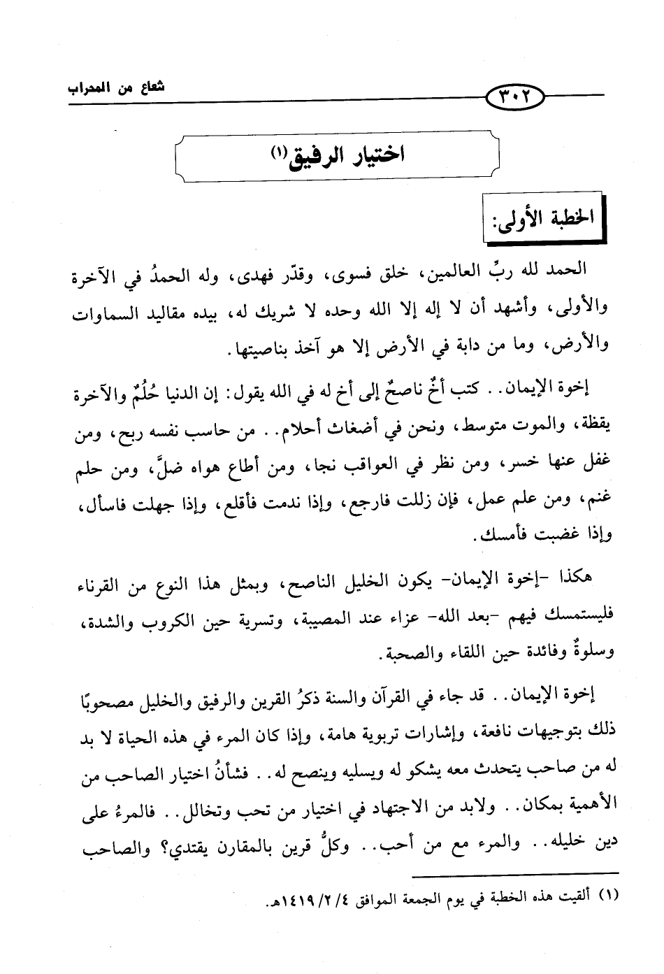 (¬1) ألقيت هذه الخطبة في يوم الجمعة الموافق 4/ 2/ 1419 هـ.