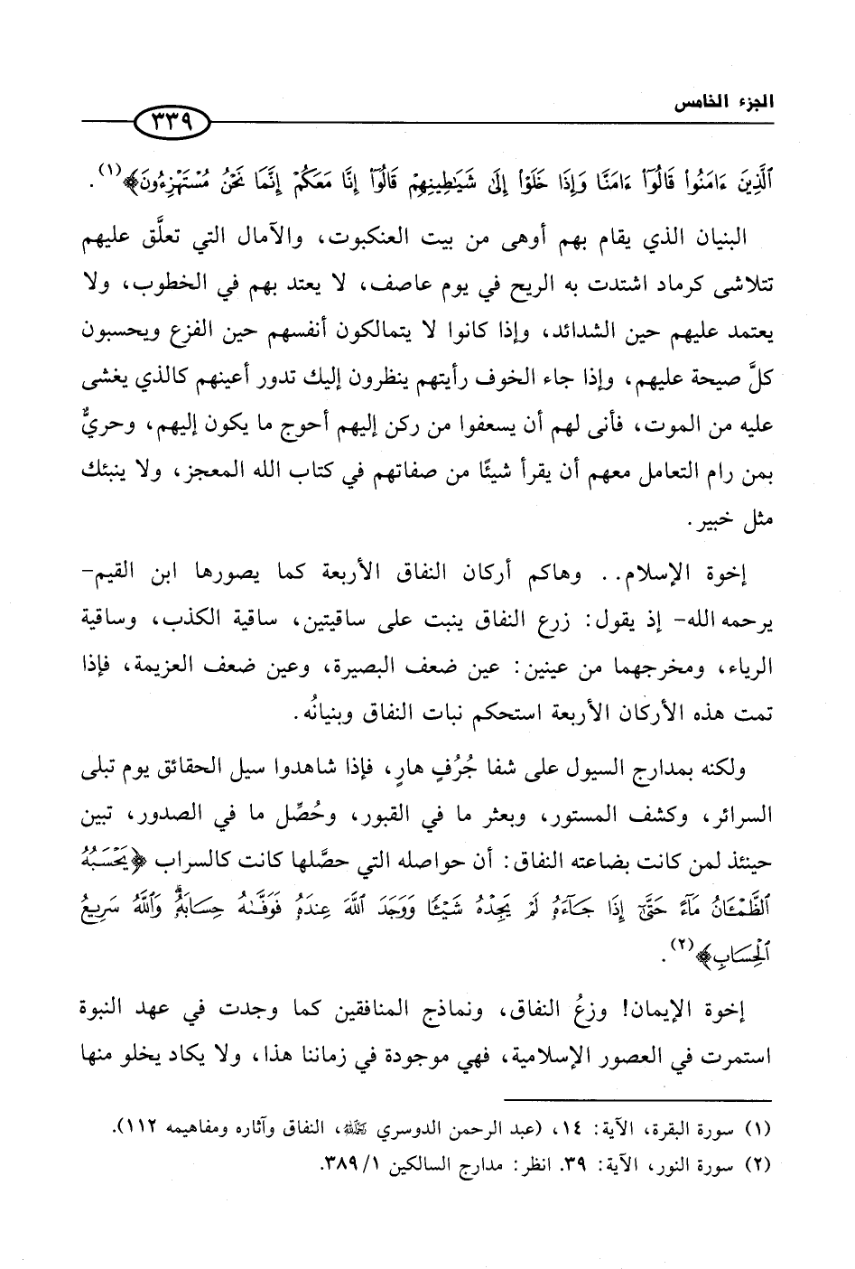 (¬1) سورة البقرة، الآية: 14، (عبد الرحمن الدوسري رحمه الله، النفاق وآثاره ومفاهيمه 112).