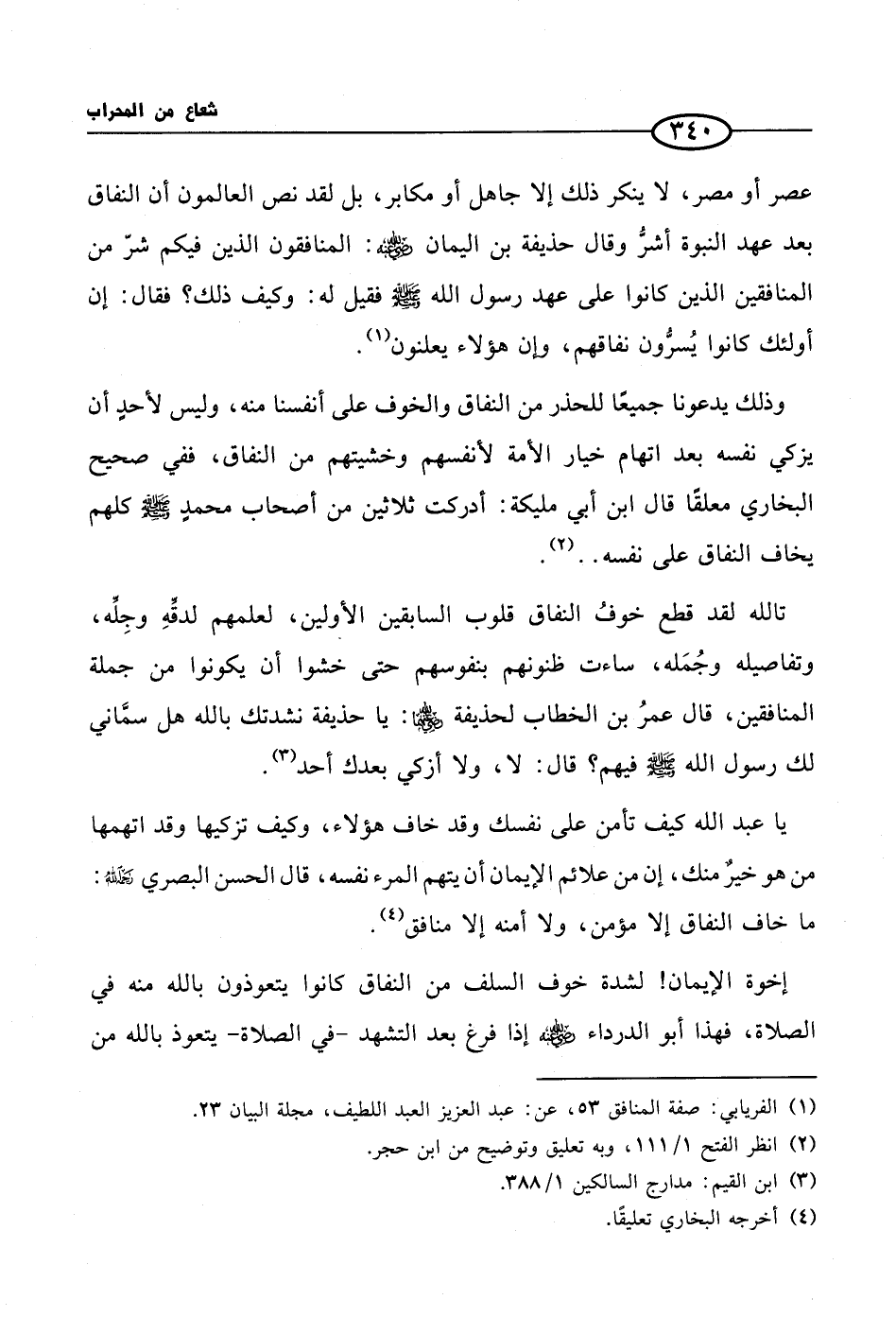 (¬1) الفريابي: صفة المنافق 53، عن: عبد العزيز العبد اللطيف، مجلة البيان 23.
