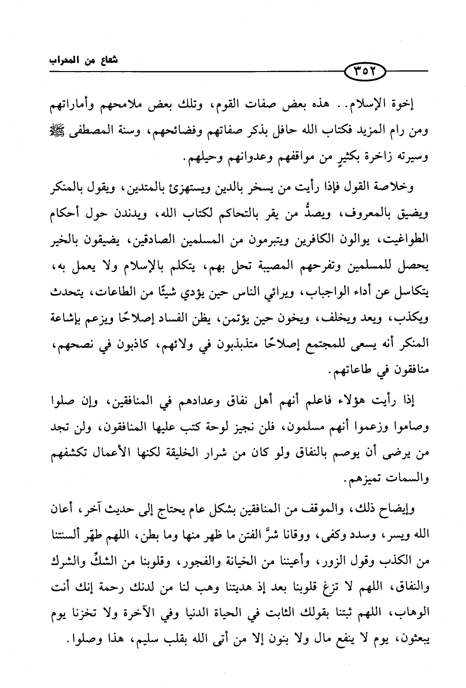 وإيضاح ذلك، والموقف من المنافقين بشكل عام يحتاج إلى حديث آخر، أعان الله ويسر، وسدد وكفى، ووقانا شرَّ الفتن ما ظهر منها وما بطن، اللهم طهّر ألسنتنا من الكذب وقول الزور، وأعيننا من الخيانة والفجور، وقلوبنا من الشكِّ والشرك والنفاق، اللهم لا تزغ قلوبنا بعد إذ هديتنا وهب لنا من لدنك رحمة إنك أنت الوهاب، اللهم ثبتنا بقولك الثابت في الحياة الدنيا وفي الآخرة ولا تخزنا يوم يبعثون، يوم لا ينفع مال ولا بنون إلا من أتى الله بقلب سليم، هذا وصلوا.