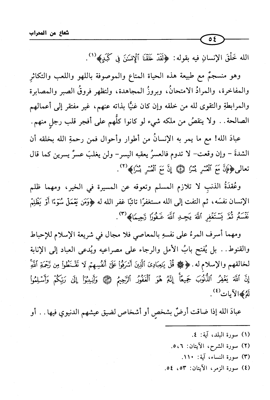 (¬4) سورة الزمر، الآيتان: 53، 54.