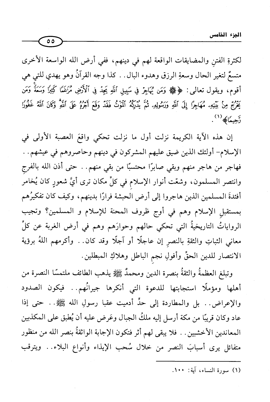 إن هذه الآية الكريمة نزلت أول ما نزلت تحكي واقعَ العصبة الأولى في الإسلام- أولئك الذين ضيق عليهم المشركون في دينهم وحاصروهم في عيشهم .. فهاجر من هاجر منهم وبقي صابرًا محتسبًا من بقي منهم .. حتى أذن الله بالفرجِ وانتصر المسلمون، وشعّت أنوار الإسلامِ في كلِّ مكان ترى أيَّ شعورٍ كان يُخامر أفئدةَ المسلمين الذين هاجروا إلى أرض الحبشة فرارًا بدينهم، وكيف كان تفكيرُهم بمستقبلِ الإسلام وهم في أوج ظروف المحنة للإسلام والمسلمين؟ وتجيب الرواياتُ التاريخيةُ التي تحكي حالهم وحوارَهم وهم في أرض الغربة عن كلِّ معاني الثباتِ والثقةِ بالنصرِ إن عاجلًا أو آجلًا وقد كان .. وأكرمهم اللهُ برؤية الانتصار للدين الحقِّ وأفولِ نجمِ الباطل وهلاكِ المبطلين.