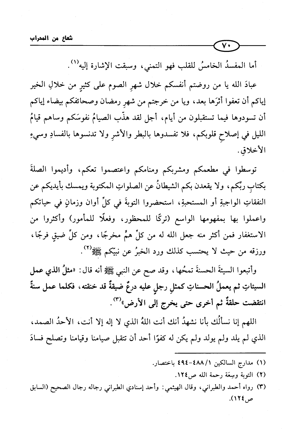 (¬3) رواه أحمد والطبراني، وقال الهيثمي: وأحد إسنادي الطبراني رجاله رجال الصحيح (السابق ص 124).