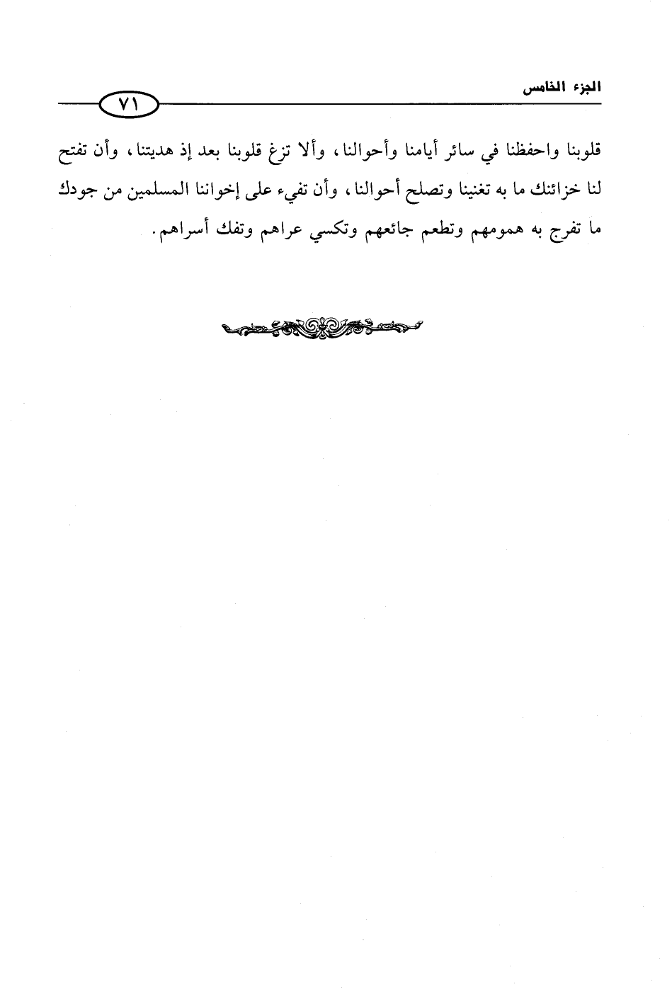قلوبنا واحفظنا في سائر أيامنا وأحوالنا، وألا تزغ قلوبنا بعد إذ هديتنا، وأن تفتح لنا خزائنك ما به تغنينا وتصلح أحوالنا، وأن تفيء على إخواننا المسلمين من جودك ما تفرج به همومهم وتطعم جائعهم وتكسي عراهم وتفك أسراهم.