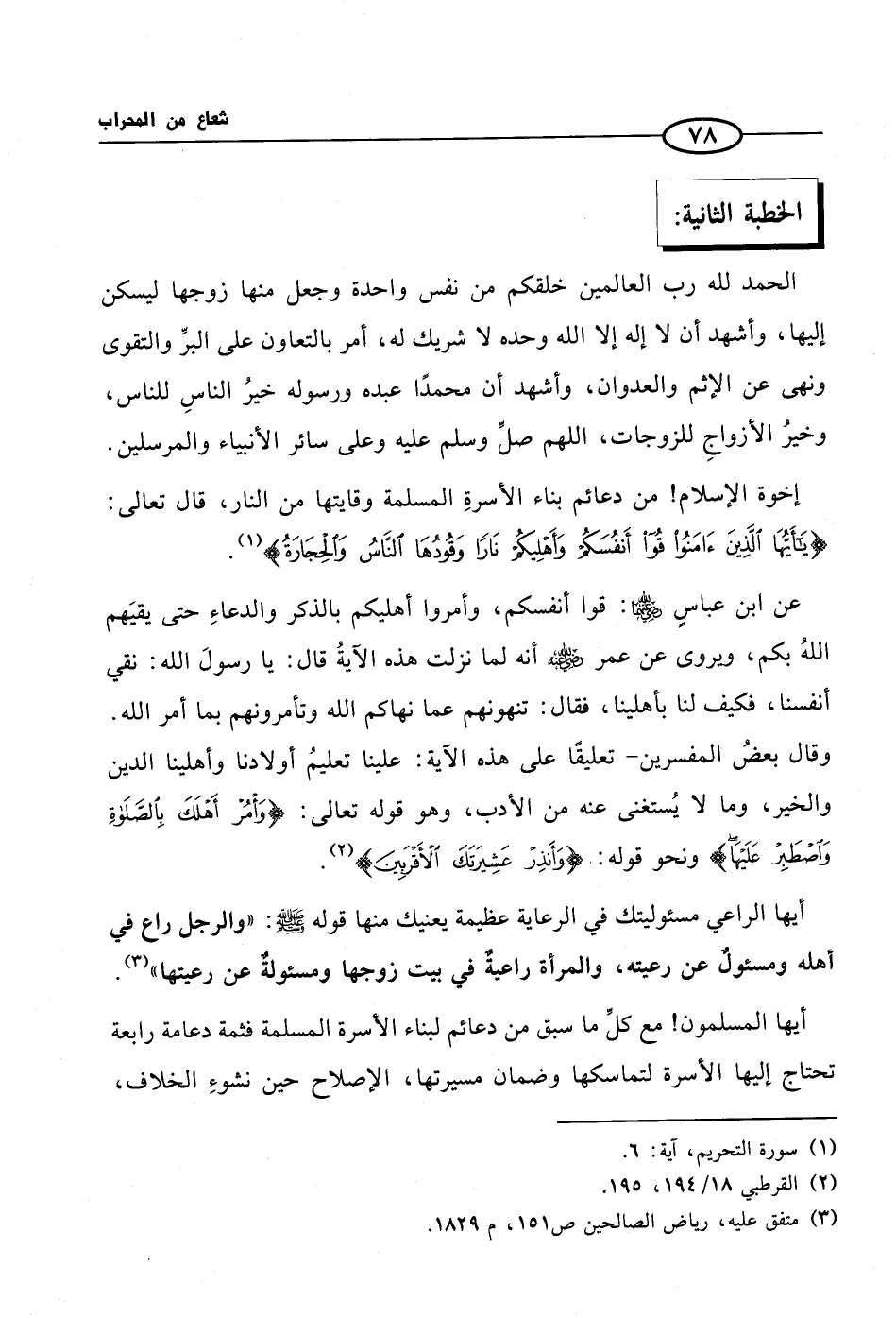 أيها الراعي مسئوليتك في الرعاية عظيمة يعنيك منها قوله صلى الله عليه وسلم: ((والرجل راع في أهله ومسئولٌ عن رعيته، والمرأة راعيةٌ في بيت زوجها ومسئولةٌ عن رعيتها)) (¬3).