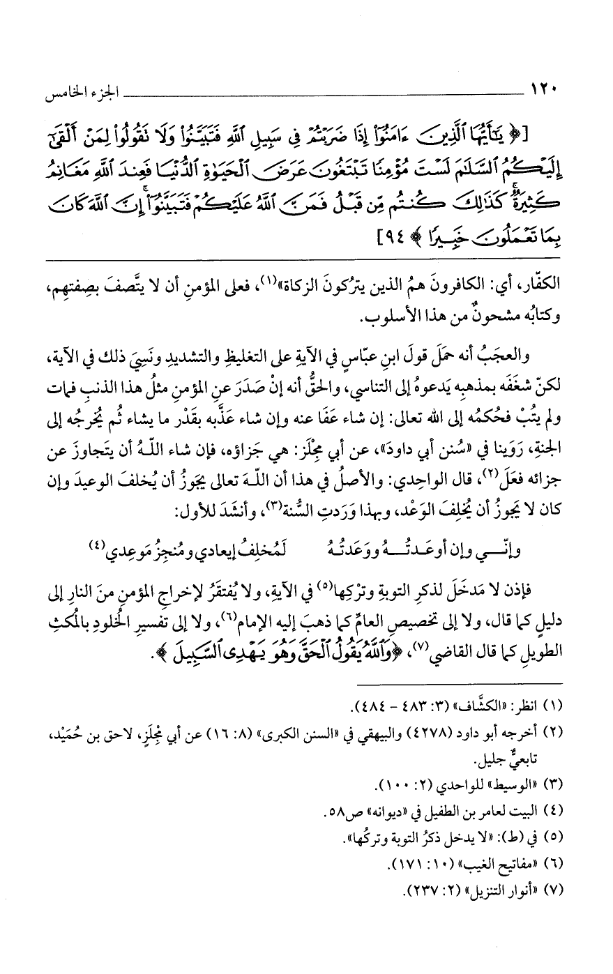 الكفار، أي: الكافرون هم الذين يتركون الزكاة"، فعلى المؤمن أن لا يتصف بصفتهم، وكتابه مشحون من هذا الأسلوب.