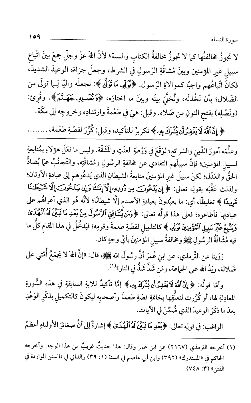 لا تجوز مخالفتها كما لا تجوز مخالفة الكتاب والسنة؛ لأنّ اللَّه عز وعلا جمع بين اتباع سبيل غير المؤمنين وبين مشاقة الرسول في الشرط، وجعل جزاءه الوعيد الشديد، فكان اتباعهم واجباً كموالاة الرسول. (نُوَلِّهِ ما تَوَلَّى): نجعله والياً لما تولى من الضلال؛ بأن نخذله، ونخلي بينه وبين ما اختاره، (وَنُصْلِهِ جَهَنَّمَ). وقرئ: