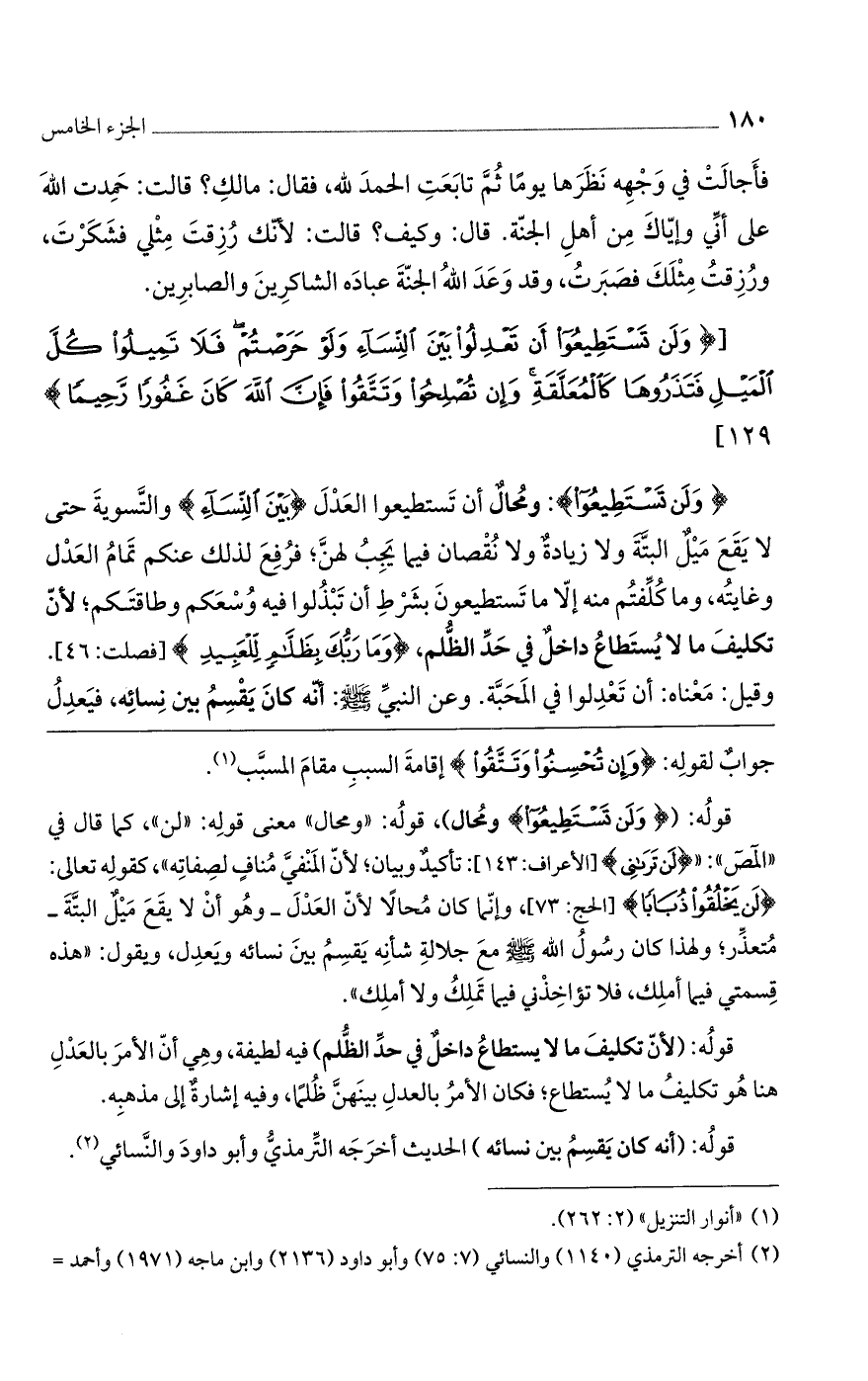 [وَلَنْ تَسْتَطِيعُوا أَنْ تَعْدِلُوا بَيْنَ النِّساءِ وَلَوْ حَرَصْتُمْ فَلا تَمِيلُوا كُلَّ الْمَيْلِ فَتَذَرُوها كَالْمُعَلَّقَةِ وَإِنْ تُصْلِحُوا وَتَتَّقُوا فَإِنَّ اللَّهَ كانَ غَفُوراً رَحِيماً)].