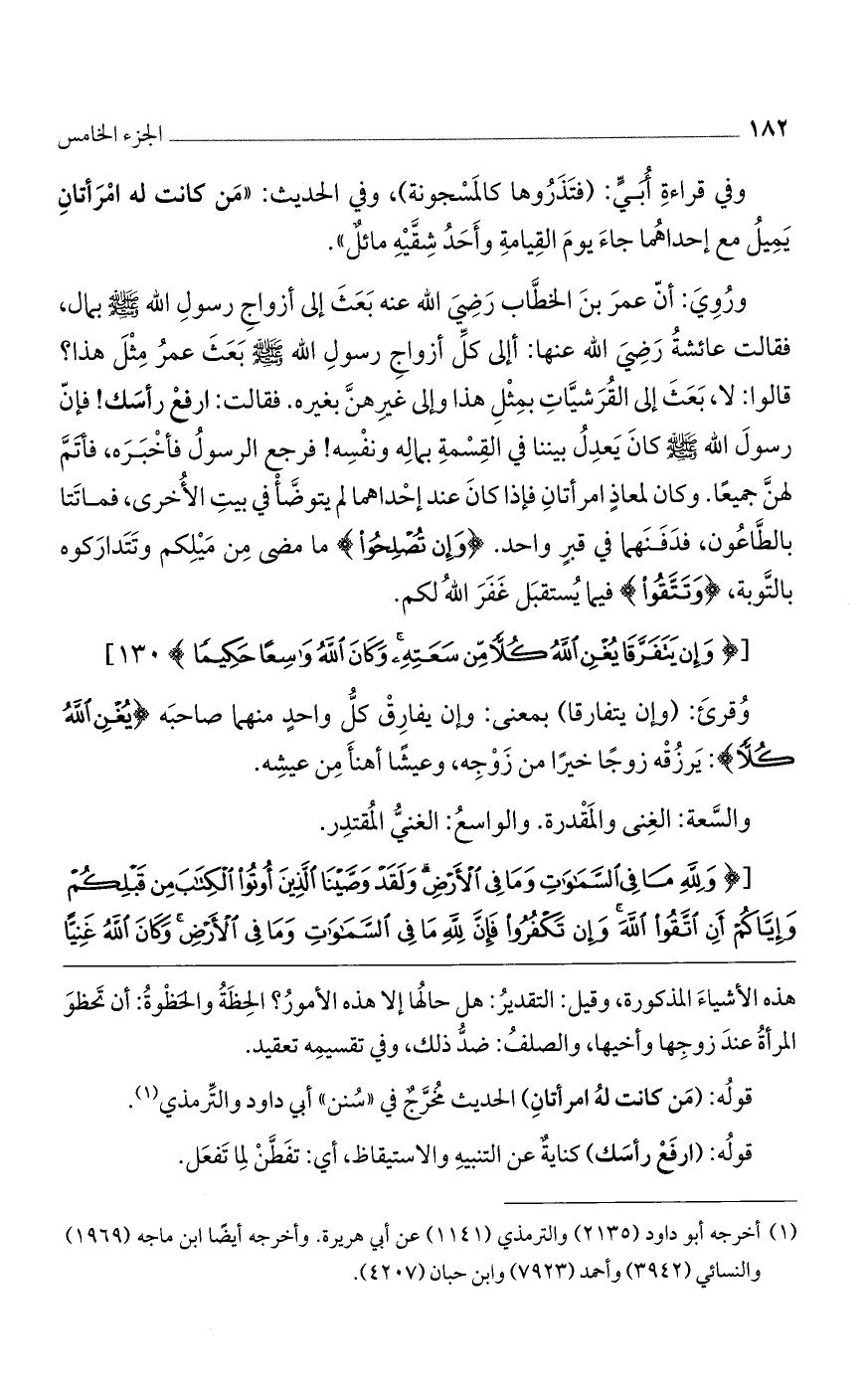 وفي قراءة أبيّ: (فتذروها كالمسجونة)، وفي الحديث: «من كانت له امرأتان يميل مع إحداهما جاء يوم القيامة وأحد شقيه مائل».